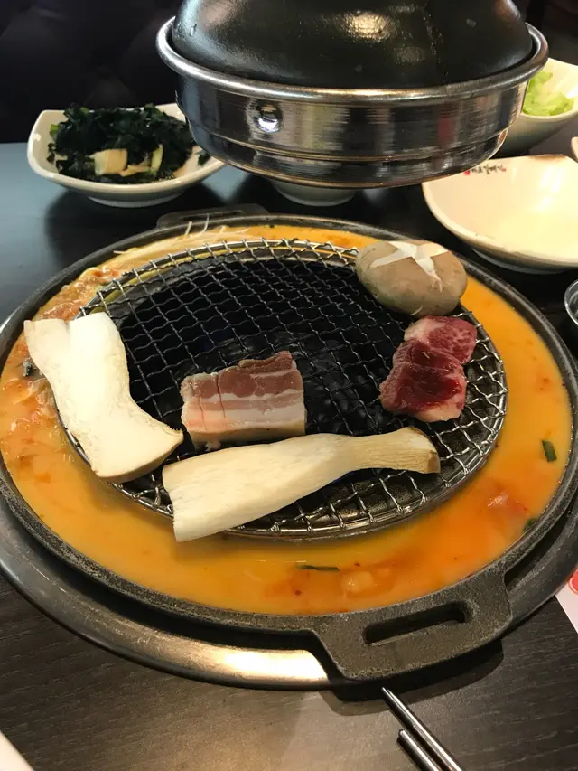 呢排天氣開始凍,又到咗打邊爐食燒肉嘅季節啦,知道呢間新麻蒲好出名,一直都無去朝聖,今日一於叫埋個朋友一齊去試下啦😋咁多套餐對我呢啲有選擇困難嘅人嚟講真係一大困擾!正當我地煩惱緊選擇邊個set時,店員已經送上滿桌配菜,非常快手👍🏻當中我最喜歡呢個醃海草,酸酸地,非常開胃😋第一次嚟,梗係要試下人地嘅招牌菜,所以我地揀咗呢個有皇冠推薦嘅SS5套餐,一次過滿足又想打邊爐又想食燒肉兩個願望🤤飲品方面,揀咗果醋系列,分別係石榴同青葡萄。仲以為果醋加檸檬會非常酸,飲落其實似水果味梳打,解膩一流!隨餐附上一個部隊鍋,鍋底非常淺,好快就有得食!店員即場面前燒呢個牛肉壽司,壽司係一口份量,入口滿腔油香,燒過嘅牛亦非常香口!肉類方面,有霜降牛肉、護心肉同牛排骨,我同朋友都覺得霜降牛肉最好味😋雪花分佈平均,一半脂肪一半肉,雖然未到入口即溶,口感反而更好😋配菜方面,有一個韓式什錦拼盤,有蝦、芝士腸、菇......當中燒年糕好有驚喜,外脆內軟,特別👍🏻甜品方面,我地叫咗呢個紅豆豆粉雪花冰,層次豐富,頂層有煙韌嘅麻糬,下面放著紅豆蓉,底層嘅牛奶雪花冰佈滿豆粉,中間夾雜著麻糬、杏仁,口感非常豐富!…查看更多