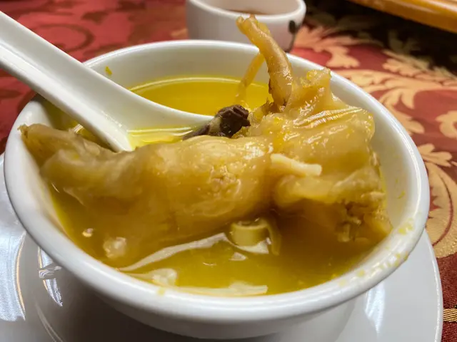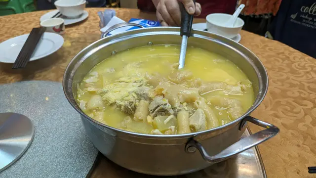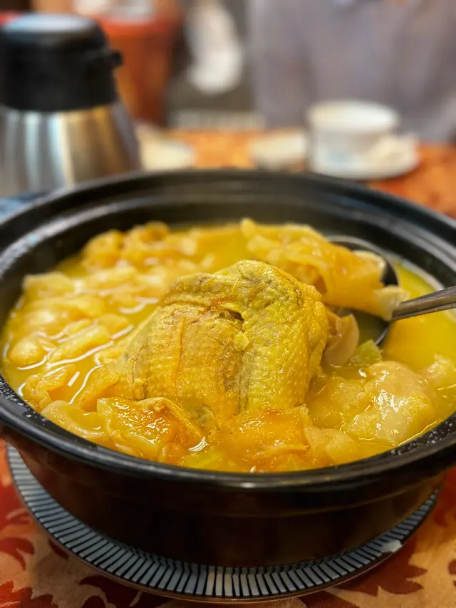 Dinner organised by Professional Athlete 2 months ago. Literally a hole in the wall inside an old building in Sheung Wan with tables organised in a family-run business setting.爵士湯 to start. Rich and collagen packed. Would have been better had they put in more cantaloupe to accentuate the sweetness. 椒鹽南非鮮鮑魚 Flavours were on point but the abalone was not sufficiently cooked. Needed to use knife and fork to slice it up.蛋白花雕蒸蟹 Crab not exactly meaty. Shaoxing wine was absent. 棟篤雞 showstopper of the evening. Crispy skin and succulent meat.紅酒炆牛尾 Ox tail was properly stewed but the flavour profile was rather monotonously sweet. Would have been better had it add a tad of tomato paste for a bit of freshness and acidity. 墨魚滑腐竹浸芥菜. I am a fan of mustard leaf and tofu skin cooked in a hearty broth so this one works for me.魚翅撈飯 another showstopper of the evening. Server stirred in generous portions of shark fin in fried rice on the table. 鮮奶紅棗桂圓燉花膠 for dessert. The perfect sweet ending.Overall an excellent venue for family/friends gathering at a budget. Only $560/pp for a scrumptious menu comprising fish maws and shark fins. …查看更多