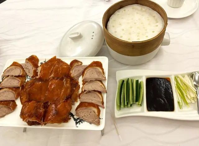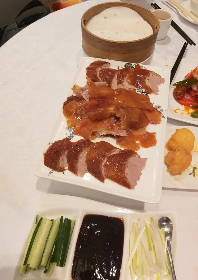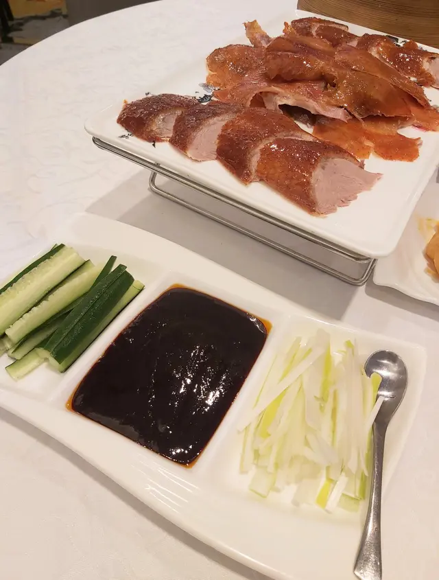 環境寬敞舒適,裝潢典雅,氣氛寧靜,適合晚飯聚會或者家庭聚餐,入座亮點就是這個自選孖寶套餐好抵食,我心水入面吃了以下孖寶。「原隻片皮鴨」服務員在我面前一刀刀片出來,已聽到皮脆肉嫩,香氣四溢,非常美味,鴨好大隻,如果要2食只要加1百元便可,至於片皮鴨搭配的薄餅酒樓用火暖著,夾蔥、青瓜和甜醬最佳配搭🥰再配自選「櫻花蝦雞粒四季豆」清新爽口,櫻花蝦幾大隻和量多,雞粒香口滋味均衡,這個配搭很夾😍另外,黑松露菌皇蝦球亦係招牌菜,蝦球鮮甜彈牙,配合黑松露濃郁香氣,口感層次豐富,令人回味無窮。整體食物用料講究,味道地道,服務體貼周到,絕對值得關注。…查看更多