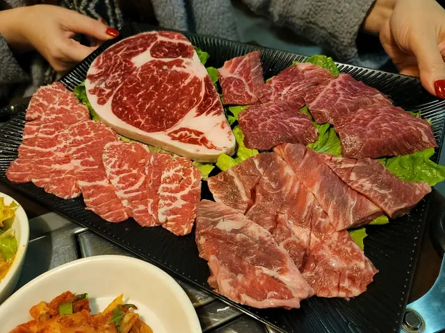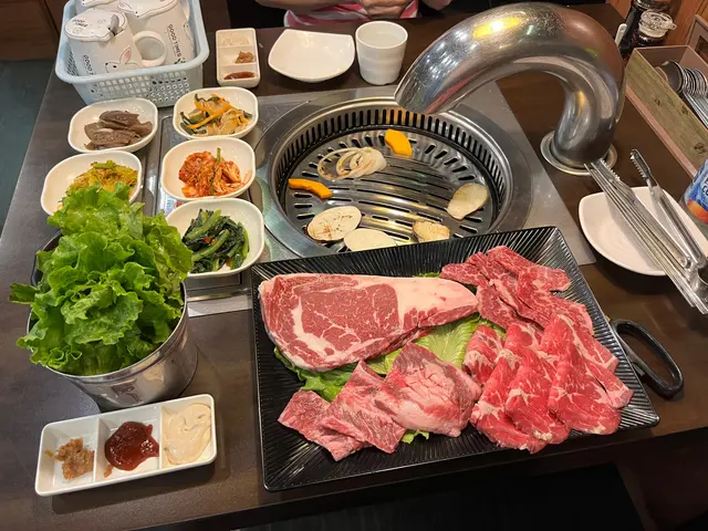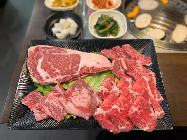 主打BBQ呢度簡直就係肉食者嘅天堂🤤 選擇多到本menu成本字典咁厚🤣 食燒肉之餘仲可以叫好多款韓式料理💕 見到佢哋嘅lunch Menu好抵食,下次再試吓先⭐️ 牛肉拼盤 ($530)🥩呢個拼盤好抵食,一大盤🐄 肉眼、肋骨肉、肩胛肉、板腱肉,仲包埋大醬湯~大大塊厚肉嘅肉眼扒係主角!剪好後先放肥嘅部份燒會無咁易燶~燒到剛好熟,多汁嫩滑嘅肉眼,用生菜🥬包住、泡菜、醃蘿蔔等前菜食,非常衝擊味蕾,好滋味😍而燒肩胛肉都一樣咁美味。肉質較結實,肥瘦適中。而燒板腱肉,個質地幾緊實,咬落去又有少少嚼勁。燒牛肋骨肉脂含量豐富且嫩滑,肉脂溶解晒後好入味,雖然全部肉但包生菜食好健康✨⭐️ 大醬湯🍲拼盤包埋嘅大醬湯真係幾出色。湯底濃郁,煮到熱滾滾,滿滿嘅韓國大醬嘅味道,夾埋啲蔬菜同海鮮細配,又解膩又開胃。⭐️ 海鮮煎薄餅 ($110)薄餅底煎得香脆金黃,餡料有各款新鮮海鮮,入口軟綿,加埋醬油仲有種鮮味爆發嘅感覺,真係鮮甜多汁,好吸引呀!💰HKD 350 p.p for Dinner📍 南대門 (尖沙咀)尖沙咀金巴利道75號東南大樓地舖…查看更多