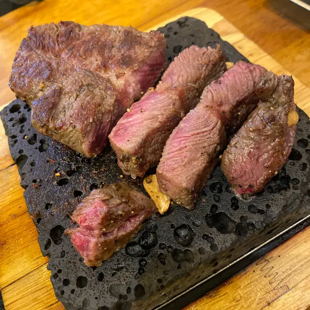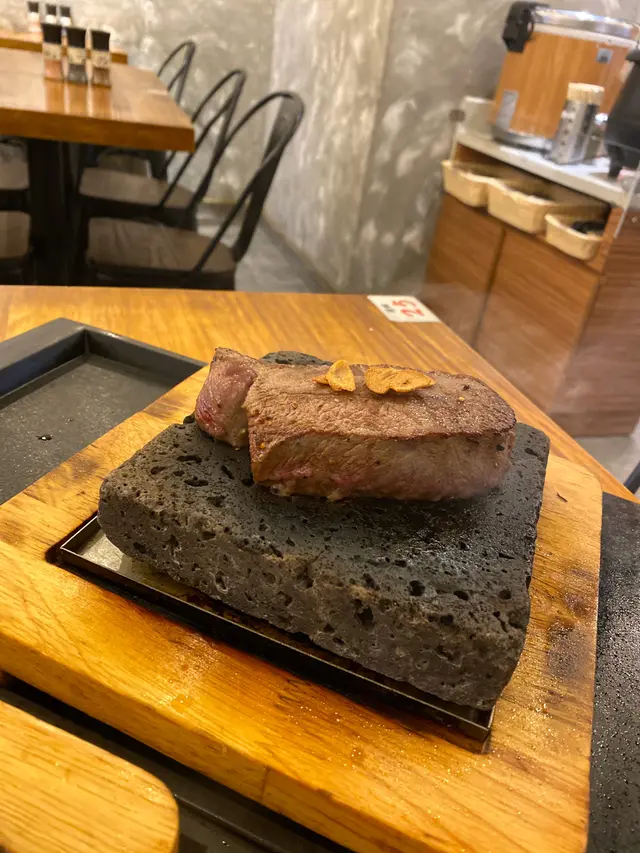 自助熱石牛扒店🥩 Xbabychanx等级42020-03-05278 浏览 关注 要滿足牛魔王男友就只能到保證食飽的自助牛扒店,開業快一年的連鎖店牛極是其中一個選擇小店位於女人街內,一進門就會看到一台購買機!首先點餐,然後將單據交予店員等待安排入座估不到在疫情下晚上九時仍然人山人海,只剩下吧台每份牛排都包括自助吧沙律、麵豉湯及白飯熱石燒難免會將肉汁濺到衣服上,店家貼心地提供即棄圍裙約一成熟的牛扒放在燒至三百度的火山熱石上供食客按個人喜好自己烹調!桌上已預備好三款調味料店中供應的5款牛都經過三天自然熟成處理!180g的牛肩排只須$88!肌肉豐富有彈性,美味多汁牛柳肉嫩軟腍,油花平均牛肩排實在太可口,忍不住追加一份最大的360g!那麼大的一塊牛扒只須$150,十分超值性價比那麼高,難怪可以在這麼短時間內開出那麼多分店…查看更多+ 5以上食记乃用户个人意见 , 并不代表OpenRice之观点。赞好分享自助熱石牛扒店🥩 牛極 (通菜街) https://s.openrice.com/QrbT0IWeu00检举 张贴 评分5味道4环境4服务4卫生4抵食推介美食牛肩肉$88牛柳$110牛肩排$150用餐日期2020-03-04用餐途径堂食用餐时段晚餐
