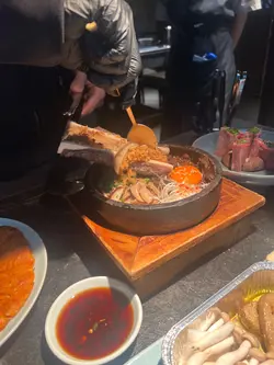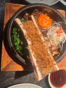 今天來到銅鑼灣體驗韓式燒烤,先說結論:1)環境好到我有點自己身在日本之感;2)食物品質超一流,價格屬於中上合理;3)服務人員態度專業且友善不誇張!本來抱著試試的心情到熟悉的金百利廣場(以前常來這棟樓),沒想到裡面裝潢的那麼高級漂亮,我還坐靠窗位,環境贏我去首爾明洞的韓牛燒烤太多,我認為光環境就值得來⋯ 不過,還是想分享幾個料理:1. 牛骨髓石頭鍋飯超好吃,上面擺了一根奢侈大骨,拌上各種配料,變成好吃無比的鍋巴煲仔飯口感2. 日本產和牛肩肉非常高級有三種和牛各兩片3. 牛舌這個我認為非常好吃,中間切開來塞蔥很有居酒屋感4. 醬蝦今天嘗試蝦子而非在首爾吃的醬蟹,個人認為還是選擇螃蟹更好5. 燒鵝肝多士,有點小貴,但是師傅在現場調理製作,好高級啊! 再次推薦,如果一個人預算四五百左右來吃可以非常高檔,贏過放題不少!…查看更多