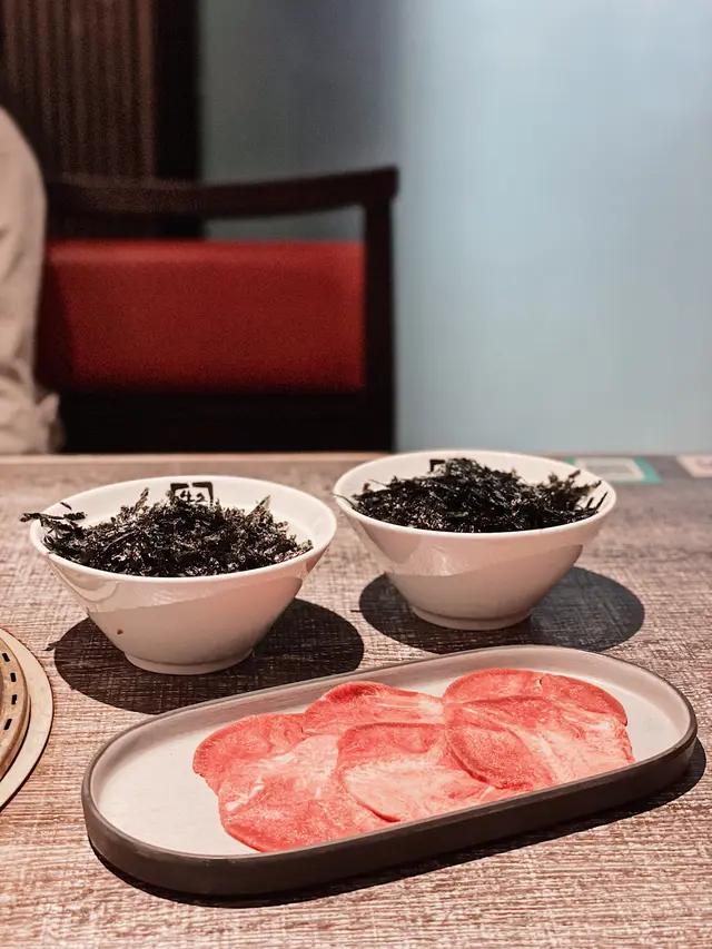 牛角燒肉部份分店出左個超破格值燒肉定食,德福廣場就係其中一間。定食包括是日前菜、沙律同埋昆布湯,仲可以免費無限追加牛角飯同飲品,都幾多選擇,有汽水、梳打水、蘋果汁、橙汁、烏龍茶、柚子蜜、茉莉花茶。而且仲可以用好優惠嘅價錢追加食物,例如加$3有兩片豬頸肉、加$6有兩片牛舌、加$9有兩片牛板腱。我哋就叫咗一個B餐定番日本國產牛、豚、雞四品燒肉定食,一個C餐燒肉&海之幸定食。………………………………………………B餐:定番日本國產牛、豚、雞四品燒肉定食 ⭐️⭐️⭐️⭐️⭐️有四款肉類,包括日本國產牛肩脊肉、牛頸脊、豚肉燒、日本雞爽肉。國產牛肩隻肉肉味濃郁,豚肉燒肥美香口。牛頸脊同雞爽肉就正正常常啦。C餐:燒肉&海之幸定食 ⭐️⭐️⭐️⭐️⭐️有五款食物,包括牛頸脊、牛五花、北海道豚梅肉、牛油廣島蠔、花虎蝦。北海道豚梅肉幾肥美,廣島蠔同埋虎蝦雖然係冰鮮貨,但係品質係唔錯嘅。牛五花就類似豬嘅五花肉,睇到明顯一層瘦肉一層肥肉。是日前菜、昆布湯、沙律⭐️⭐️⭐️是日前菜係中華沙律,同昆布湯、沙律一樣味道普通。鹽味北海道帆立貝⭐️⭐️⭐️⭐️另外都有用優惠價追加咗一啲牛頸脊啊豬頸肉啊等等。比較推薦嘅就係牛頸脊同埋鹽味北海道帆立貝。牛角飯 ⭐️⭐️⭐️⭐️正常發揮咁好食。牛角提供多款醬汁點燒肉,包括鹽醬、牛角燒肉汁、秘製燒肉醬、特製檸檬汁、辛味醬汁。………………………………………………今次牛角推出呢個定食其實真係幾抵食,不過就只有部份分店同埋部份時間供應。但係就成功令到牛角嘅晚市生意好咗。我哋嗰晚平日星期三 7:00pm鬆啲,都等咗大概10分鐘先有枱。…查看更多