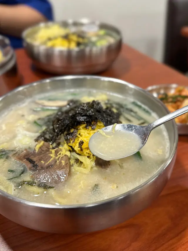 店在尖沙嘴山林道。小店一間,乾淨利落,桌距夠,坐得舒泰。午晚高峰常滿座,門口有人候位。服務員有禮,主動添水,上菜節奏穩。落座會先上泡菜。看得出是自家醃製,辣度輕,蝦醬帶出鮮味,灑上芝麻更香,單吃也不鹹。主打是自家刀削麵。我們點了牛骨湯和雞髀兩款。牛骨湯清而有味,牛香明顯,不覺負擔。雞髀刀削麵份量足,整隻雞髀躺在面上,再配一大顆馬鈴薯。湯頭較濃,鹹度比牛骨湯高一點,但沒有味精感,吃完不渴。麵條邊厚中薄,帶嚼勁,吸湯力好。小吃也有驚喜。五花肉泡菜煎餅厚薄適中,表面脆,裡面軟糯,咀嚼有層次。雙拼蒸餃子個頭很大,豬肉與泡菜各兩顆,餡料紮實,調味清,鮮味突出。整體價錢合理,份量實在。想吃一餐暖身、不花巧的韓式麵與點心,這裡可靠。…查看更多