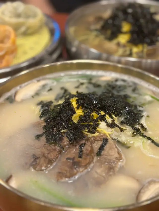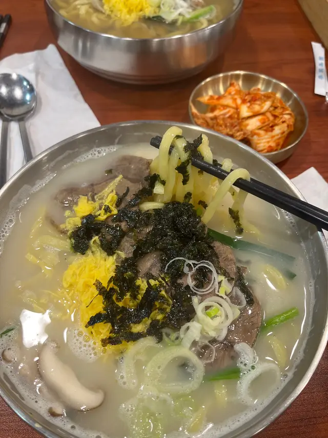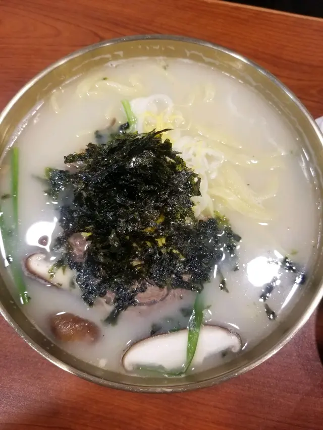 未食過韓國刀削麵,睇相好似唔錯咁,又有位,就入去啦花蛤刀削麵 $78估唔到有咁多花蛤,雖然細粒d,但起碼足料。麵條粗身而短,條條彈牙,既胞肚又滿足!湯底鮮甜!牛骨湯刀削麵 $78一塊快牛腱肉都幾大塊(以女士食量黎講),雖然唔見大大舊牛骨,但飲得出牛骨湯好清甜,無偷工減料架!海鮮韭菜煎餅 $68皮脆內軟,有豐富魷魚、韭菜餡料,每一口都有魷魚🧡🧡🧡好香口!不得不提,佢地碟泡菜前菜好好食,好新鮮,又唔太辣,非常可以!店員服務有禮,店舖環境感覺乾淨,夠光猛,冷氣夠,喺夏天食嘢尤其重要。埋單先知原來呢間韓國刀削麵係香港第一間架,唔怪得d麵質咁Q彈啦~…查看更多