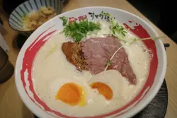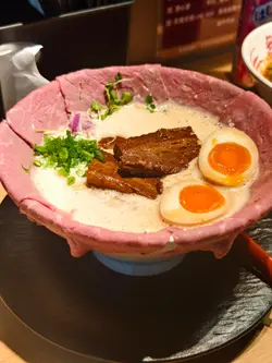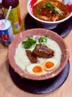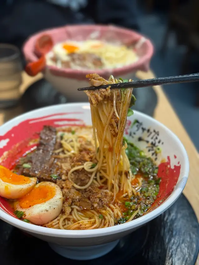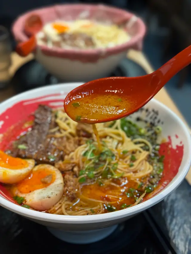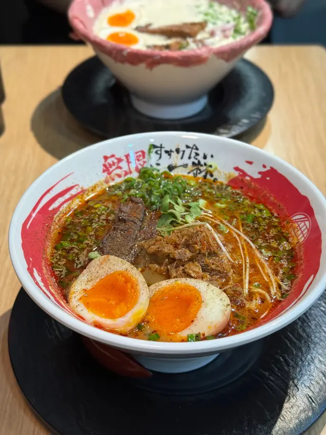無限拉麵係嚟自大阪嘅拉麵店,主打用牛骨熬製湯底,之前經過都見到大排長龍,近期平日放工時間,見排隊嘅人少咗啲啲,就即刻想去試吓。我哋叫左牛骨白湯拉麵、牛骨麻辣叉燒拉麵、特製和牛丼飯。………………………………………………牛骨白湯拉麵 ⭐️⭐️⭐️⭐️ $98麵條屬於幼身個種,口感偏有咬口。湯底好濃郁,奶白色,好有牛骨湯味。配菜有叉燒、和牛、蔥、洋蔥等。 我另外仲加左一隻溏心蛋。配料都好食!牛骨麻辣叉燒拉麵 ⭐️⭐️⭐️⭐️ $108湯底一樣都係牛骨湯,不過就多左麻辣肉碎同辣油,好惹味。配菜有叉燒、肉碎、蔥、洋蔥等,不過就無和牛片。特製和牛丼飯 ⭐️⭐️⭐️⭐️ $28丼飯有兩大片和牛同埋生雞蛋,攪勻一齊食,味道層次好豐富。………………………………………………拉麵店的座位比較少,門口有部機器,買完拉麵返埋位就有店員送上拉麵,店員都好有禮貌。…查看更多