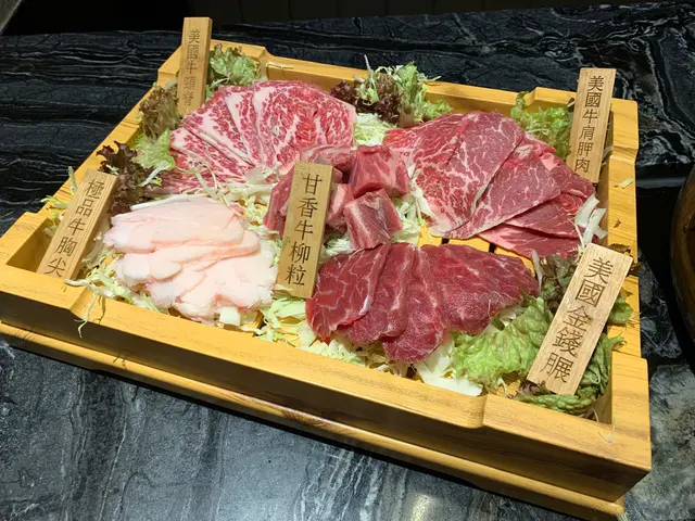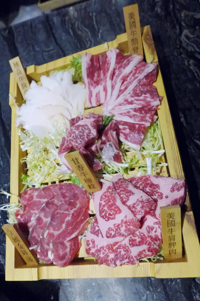 酸梅湯($42)酸梅湯因為剛剛煲起所以唔夠凍,不過侍應都細心送上冰塊。牛魔王拼盤(小)($328)哩個牛魔王拼盤可以一次過食勻金錢展、牛肩甲肉、牛柳粒、牛頸脊同牛胸尖,份量夠二至四人食,真係啱晒牛魔王呀!
