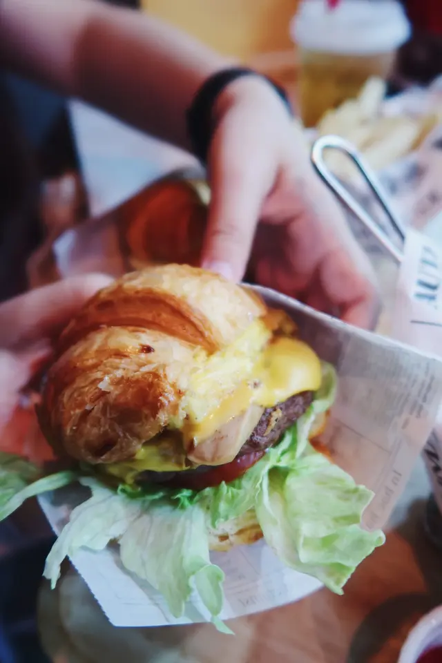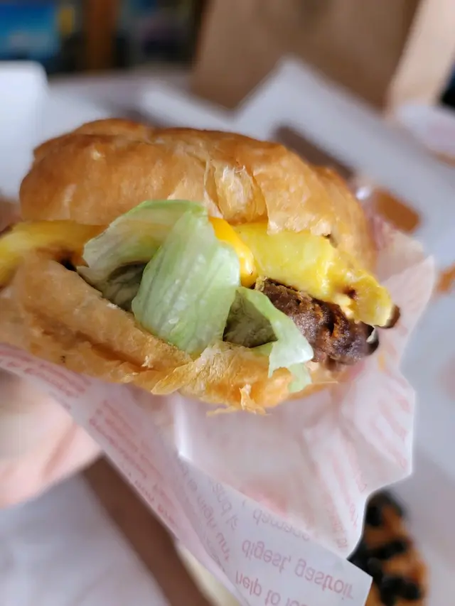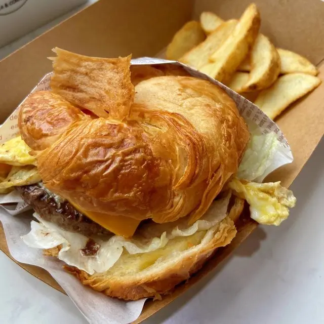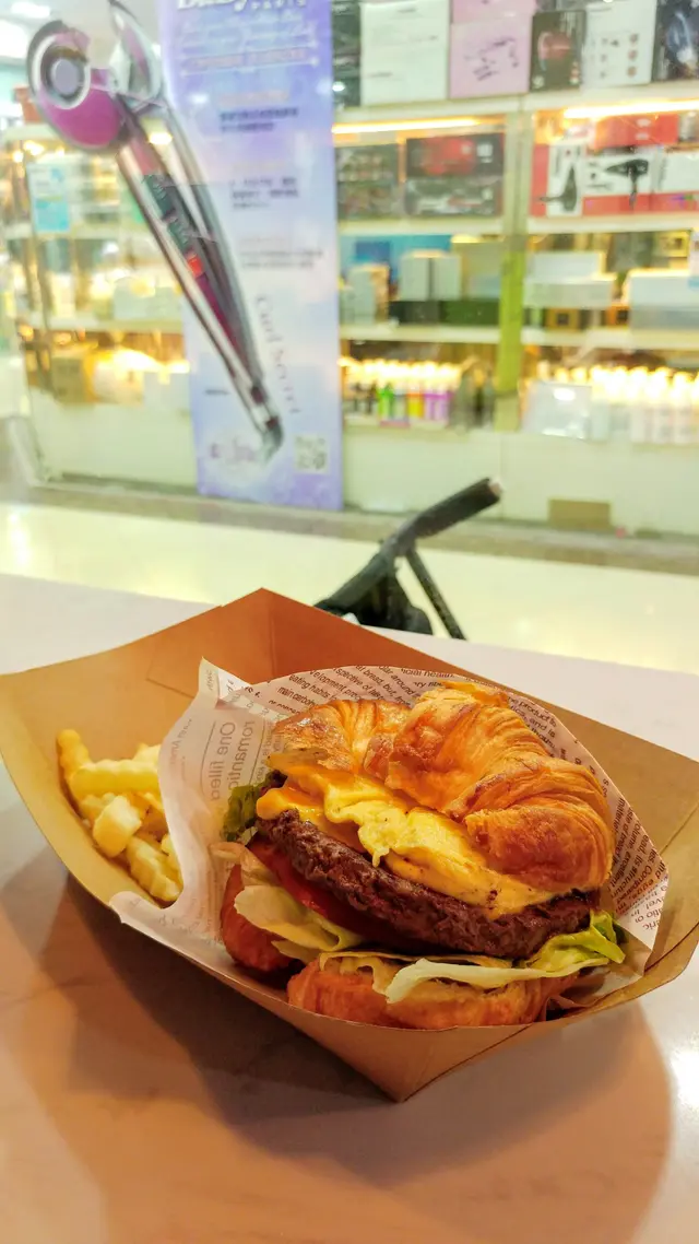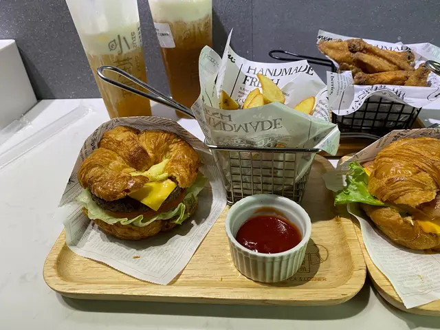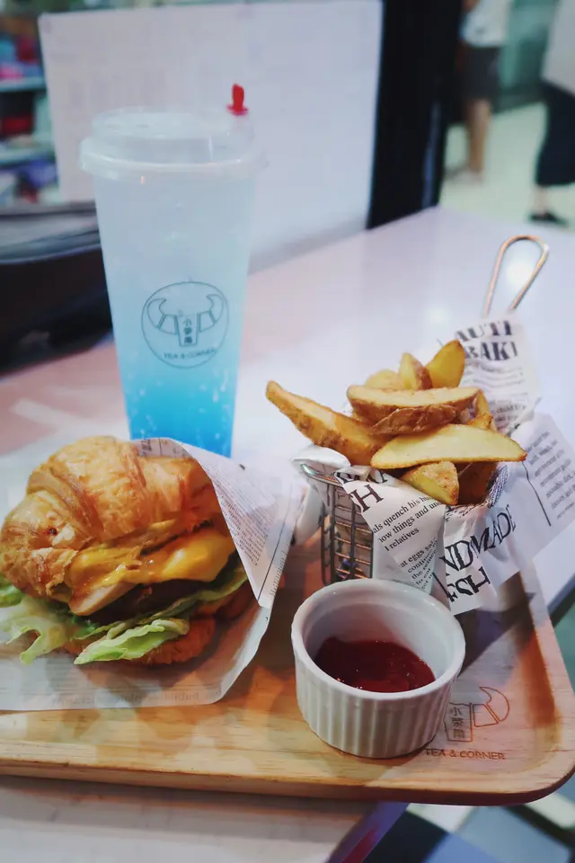 如果你鍾意食漢堡同牛角包,可以試吓呢間小茶角!點解叫「小茶角」?「小」係因為店面唔大,但有種小家庭經營嘅 Feel 🏡 「茶」就係佢哋有好多款飲品可以揀,奶茶、果茶等都有 🍵 「角」就唔單止係位置喺角落頭,都因為佢地嘅招牌 #牛角包 都幾出名 🥐 呢間餐廳喺屯門碼頭同蝴蝶灣附近,只有 10-12 個位,係真正嘅「小店」。佢地有 3 張吧枱,其中一張面向海邊,可以欣賞到好靚嘅日落。我去嗰陣,見住個天由金黃色變成橙紅色,真係好靚 🌅 講完靚景,係時候講吓佢哋食物!因為我同老公第一次去,我哋掃 QR Code 落單時,好快就揀咗幾款熱賣推薦。首先係牛魔王 ($67),個牛角包入面有手打嘅美國牛肉漢堡、炒蛋、蘑菇、芝士同蕃茄!牛角包個皮好鬆脆,如果你叫牛角包加嘢飲,仲會自動升級成 Combo,可以免費揀炸薯角、薯條或者沙律。佢哋嘅炸薯角即叫即炸,唔會好油淋淋,好味 🍔🍟 另一個熱賣推薦係單骨雞翼配蟹籽醬 ($36),呢款雞翼有驚喜!食落有好香嘅椒鹽味,但唔會好熱氣。如果你麻麻哋蟹籽沙律醬,可以另外嗌個黑松露醬,我覺得味道更夾、更惹味 😋 除咗牛角包同雞翼,我哋仲叫咗珍寶小茶角 ($109) ,即係 all day breakfast 同埋雜錦蒜蓉炒烏冬 ($55)。嘢飲方面,我哋嗌咗茉香奶綠加珍珠同紅柚寒天綠茶。可以咁樣一邊享受豐富嘅食物,一邊靜靜哋坐低欣賞日落,真心正!…查看更多