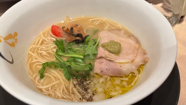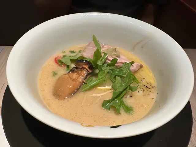 餐廳環境同服務尚可,但特色凳子實在不太舒服,坐久了感覺有點不適,建議用餐時選擇其他座位。牡蠣白湯拉麵,總體給予8分(滿分10分)的評價。這碗拉麵的湯底和配料帶來了獨特味覺享受,但也有一些小缺點值得一提。牡蠣白湯拉麵的湯底是最大的亮點,色澤濃郁,聞起來和入口時帶有一絲忌廉的香氣,口感濃厚卻不油膩。湯中加入的檸檬片絕對是畫龍點睛之筆,酸香與鮮味完美融合,讓整個湯底的味道更加突出,令人回味。洋蔥粒的加入更是妙手,細膩的口感提升了湯的層次感。不過,對於男生來說,這碗拉麵的分量絕對不足,感覺吃完後還有些許空虛。配料方面,肉片只有兩片,但肉質鮮嫩滑溜,帶有濃郁的肉香,入口即化,令人滿足。然而,牡蠣僅有一隻,中等大小,雖然鮮甜可口,帶著濃郁的海鮮香氣,但數量實在有點單薄,若能多加一兩隻,會讓整體體驗更豐富。拉麵本身的彈性不錯,與湯底搭配得當,但整體份量對於大胃口的人來說可能稍嫌不足。總的來說,這碗牡蠣白湯拉麵在味道上用心,湯底的創意和檸檬片的巧妙運用令人印象深刻。但份量和配料的數量稍顯不足,加上餐廳座椅的不適,略為影響了用餐體驗。除此之外,拉麵價錢再連加一,真的會令人卻步,如果能改善這些細節,這家餐廳的價分絕對可以加多一兩分。而對於喜歡創新風味的食客,這裡絕對值得一試,但我就不會encore。…查看更多