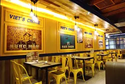 !前身喺吉野家個鋪位,地方都幾大,一室芥辣黃襯啡,搶眼醒目,再配木系裝修,牆上有不少越南風土嘅畫作,提醒你佢喺一間越南餐廳。店內以4人枱為主,比起綠楊坊店,依度啲間隔闊落好多,揀個梳化卡位,就坐得更舒服