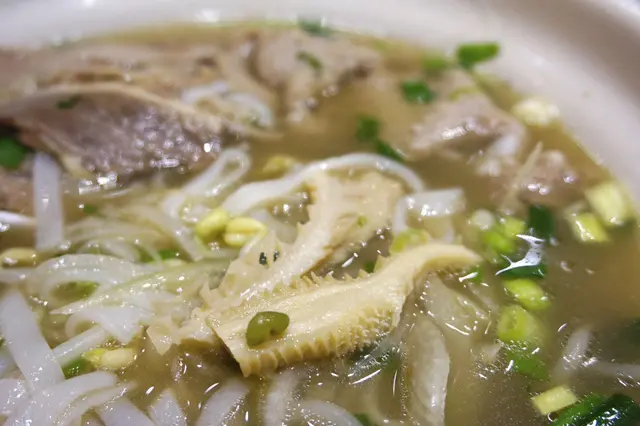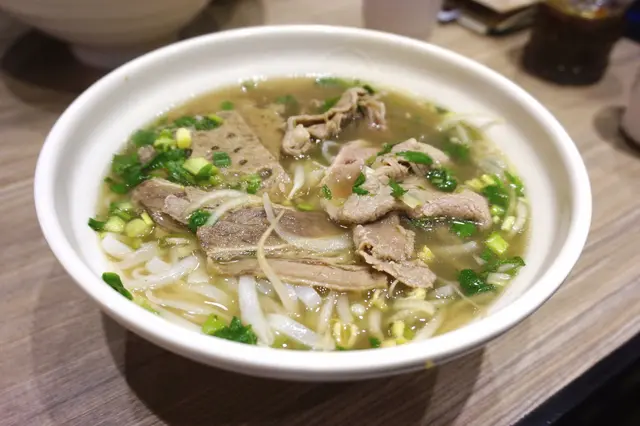 散叫價$50,套餐價$58,配飲品一杯,改特飲就+$4。何謂「特別」?咪就喺四合一牛河囉,貪其一次過可以試晒胡椒牛扎肉、金肚絲、牛腩片及生牛肉。如果想加菜(津白 / 生菜 / 蘿蔔)無問題,都喺多+$8。晌餐牌上,店方特別點明「本店所有湯底均選用鮮牛骨熬制」,所以,真喺要嗒真啲個湯底先得。先講湯底,香而不俗,的確幾有骨香且馥郁;河粉較廣東嘅幼少少,但好滑溜,而且份量頗多。一碗裡果真有齊4款「牛」,不過,份量唔算好多,金肚絲沉晒底,初時仲以為俾漏添