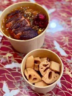 件鴨胸真係好食到,入口咬嗰下係震驚㗎🤯嗰下諗點解會有層脆焦糖係鴨胸上面嘅,咁香咁甜又麻麻辣辣係點做到㗎🤯🤯🤯點解鴨胸可以咁厚切又咁彈嫩㗎🤤如果我係街坊,每日都可以食到,真係好幸福☺️🌿香草火炙鴨胸咖哩丼 $80鴨胸表面灑上糖,炙到焦糖般脆口,雖切得厚身肉質仍然好嫩;香草+山椒帶出微麻微辣的層次。鹿巷主打甜咖哩,用水果同蔬菜慢熬,甜香突出🥛豆乳雜菜湯烏冬 $60湯底豆香明顯,仲有重重奶香;蔬菜足料,烏冬彈牙煙煙韌韌🍗特製雞軟骨 $40唔係炸,係煎香再烤香;撒上山椒粉,麻麻辣辣🌶️,鹹香惹味…Read More