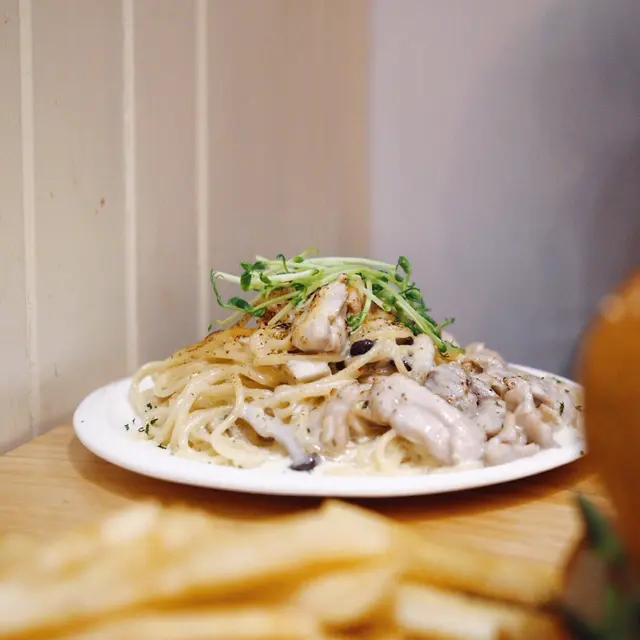 同友人係銅鑼灣又意外發現到美食,要報導一下。店既外面似係一間普通既cafe,但凡事都唔可以睇表面,佢地既料理一點也不平凡。爽瓜瓜熔岩牛肉芝士漢堡。個名好長,但重點有哂厚厚牛肉,加上爽脆青瓜,再配上店家特調花生醬, 好正。首先個花生醬無想像中咁「杰身」,反而好順口但又保留濃濃既花生醬味。牛肉同青瓜比例好好,牛肉本身唔算濃味,同埋清爽既青瓜令到個包唔會淨係得花生醬味。特濃香烤芝士忌廉什菌雞肉意粉。店員聽到我地鍾意食芝士就推介呢個意粉,芝士味好濃,表面仲用火烤過,好香。發現個意粉有加到辣椒片,店員話係為左減低芝士既油膩感,少少既辣味去中和。同店員(定係店長?!)傾左陣,佢地既料理注重係平衡方面,每款料理都唔想偏重一種味,而且好多醬汁都堅持自家制。希望佢地繼續比心機,下次再嘗試其他作品。…查看更多
