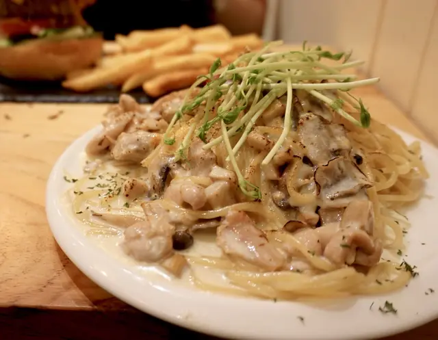 首页餐厅香港铜锣湾好日咖啡店特濃香烤芝士忌廉什菌雞肉意粉