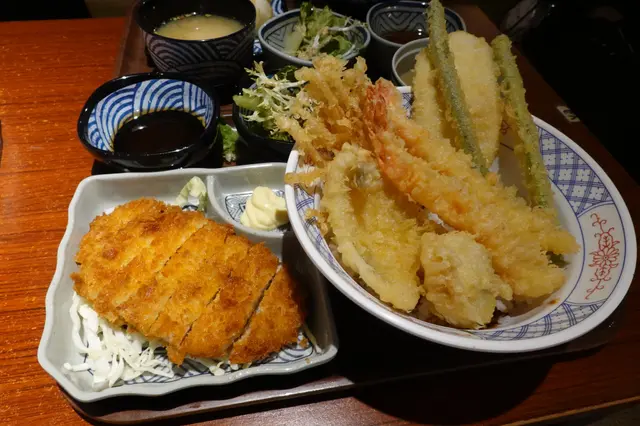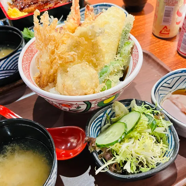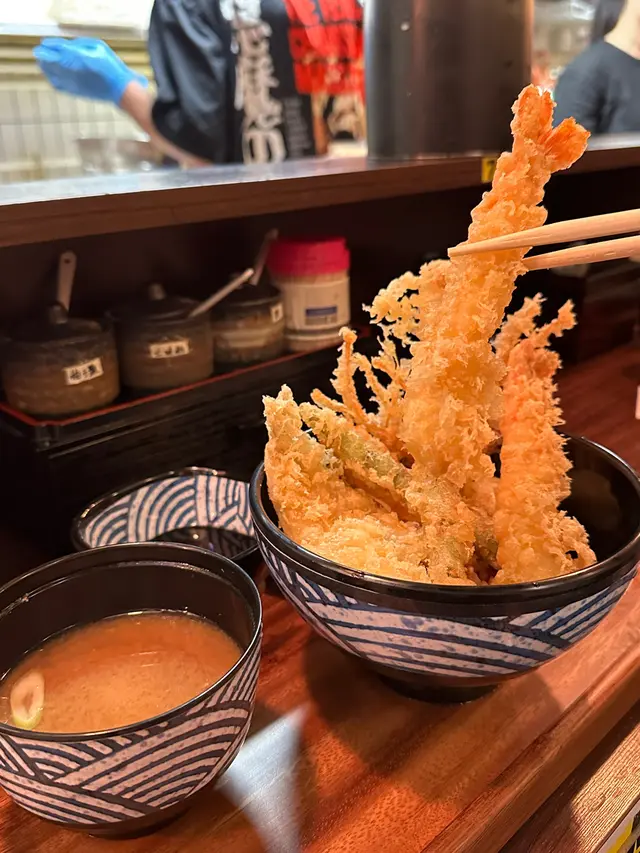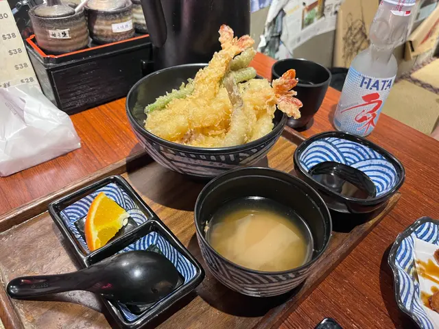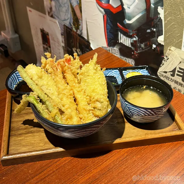 係旺角有間可以自選天婦羅丼飯既餐廳就好似doraya咁可以自選刺身丼好似幾有趣所以去左試下位置係廣華醫院格離對住窩打老道d舖位門口好多牌都幾易認我地星期日 五點八左右到達仲可以直入餐廳有兩層地下係bar檯位樓上係tatami位我地就坐左樓上座位就寬落d不過要除鞋牆身貼滿晒動漫野QR code落單都有寫明晚市要加一既好像車仔麵咁可以自己揀餸或者有指定丼飯既所以先話有d似doraya咁我地就揀左一個自選丼定一個指定丼自選定食仲可以轉烏冬咬口都唔錯另外仲加多左個吉烈豬扒香脆唔鞋口定食同自選都揀左虎蝦大大條自選仲揀左帶子都好大粒下連半熟蛋都有得揀天婦羅有d似炸蛋但無咁厚皮兩個定食都有跟味噌湯同沙津雖然要捧上黎樓上但都仲係熱辣辣唔會油淋淋麵衣亦都唔算厚整體係食得好滿足既落番地下門口埋單兩個定食加埋吉豬連加一大約三舊水正常價位餐廳有動漫feel服務OK都唔錯可以一戰有限時六十分鐘食完出門口見到已經大排長龍都有唔少捧場客係香港呢個時勢都真係算少見所以都係早少少黎比較穩陣…查看更多