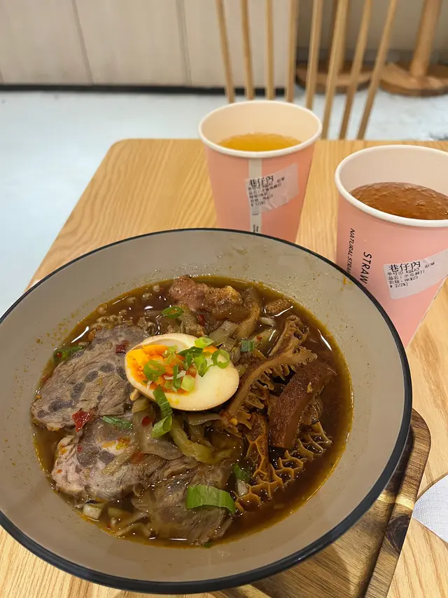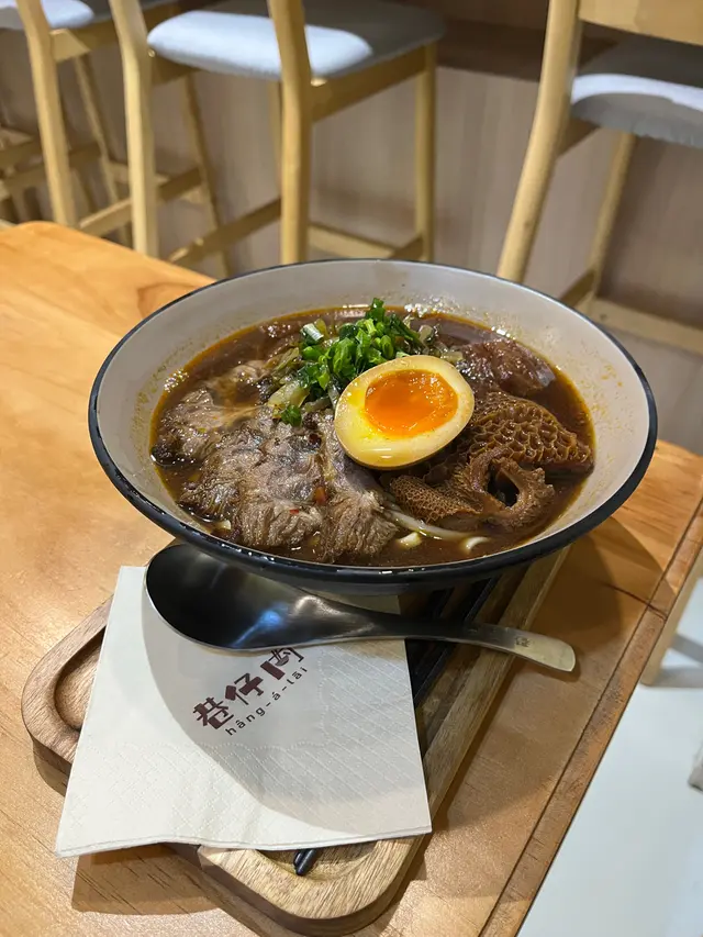 2-4人去的話,推介必點炸全雞!!即叫即炸,上檯時用手撕,對手根本很難撕雞肉,因為隻炸雞實在太滾燙了!雞肉鎖汁,面上灑左d鹽酥雞調味粉,皮薄肉嫩,脂肪唔多,一切開d汁連少許雞油留出來架,$198/隻抵食!另外叫左個犇三寶牛肉麵,3款鹵水有金錢肚、牛筋,同埋牛腱,入味夠腍,麵質就選了蒸煮麵,口感軟一些,味道不錯$92飲品揀左有氣水蜜桃茶+有氣冬瓜茶,味道好,有氣零舍好飲🧡💛非常近觀塘地鐵站,D3出口落橋就到了來自台灣的年輕老闆和老闆娘主理,聽到口音似係操台式普通話用餐時特別覺得自己喺台灣食緊嘢咁餐廳坐得舒適,地方夠大,冷氣夠凍,又有自助水吧,洗手間乾淨…查看更多
