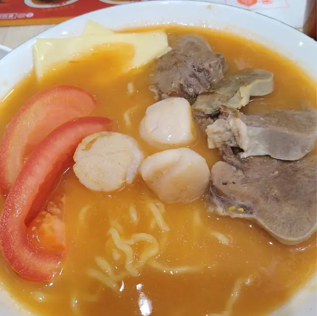 🍜粉麵 🚹1-4人 🐻❄️#箍牙妹 💛——————夏天有時唔想食飯,所以🐻🐻❄️又去食湯麵啦😆每碗麵🍜都有得揀湯底、麵條、仲有各式配菜,🐻🐻❄️陷入咗選擇困難症一段時間先揀到想食咩🤣🤣🍜犇犇有禮牛面頰+牛坑腩+崩沙腩$88上海麵,蕃茄湯底崩沙腩軟滑,另外牛面頰同牛坑腩咬落都軟冧度適中👍🏽蕃茄湯底好濃,係用茄蓉製成,上海麵都幾掛湯😬溏心蛋味道淡,食到蛋味🥚,入面好流心🤤不過因為茄蓉湯底都唔係濃味,兩者夾埋就無咩火花啦~🍜帶子牛郎帶子+牛脷👅$72大光麵,泰皇咖喱蕃茄湯,侍應會特登換鐵湯匙🥄同鐵筷子🥢俾大家泰皇咖喱湯飲落係甜甜哋嘅咖喱,唔會好咸好濃,🐻❄️第一次忍唔住飲晒啲湯,真係好好味🤤🐻❄️第一次食大光麵,其實同公仔麵類似🤣但都掛湯架🤤帶子係靚帶子,食落彈牙、啲肉一梳梳😆👍🏽👍🏽牛舌👅有咬口,但又唔會韌👍🏽👍🏽結論:食材靚、煮得好,值得encore,下次想試埋撈麵😆…查看更多