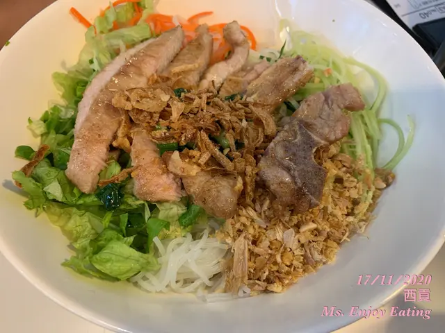 西貢呢間越南餐廳都幾岀名,好多明星都食過,係門口貼哂相岀黎😏由於疫情關係,而且餐廳座位都好迫好密,所以今次叫左外賣,返屋企慢慢享用😋無湯汁又係凍食,所以外賣一樣咁滋味👌豬扒撈檬 $60無論堂食定外賣,份量都超大份,料勁足,豬扒煎炸得剛剛好,又大又軟又香又juice ,啖啖肉,好好味😋豬扒下有好多生菜同極大量炸乾蒜,倒入最重要的酸甜汁,同煮得軟熟剛好的檬粉撈呀撈🤩口感非常豐富,有軟有硬有脆,又酸又甜,加埋香口豬扒,又要露出一個好滿足的表情😁推薦度5/5越南粉包 $61十分大份,內有肉碎黑木耳,好足料又夠飽,唔加汁就淡d,加d酸甜汁,味道就更上一層樓☺️推薦度3.5/5人均消費$60西貢越南真味 (西貢)西貢敬民街42-56號西貢大廈地下16號舖…查看更多
