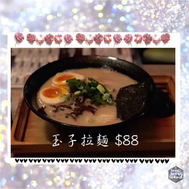 今日剛岩出開中上環, 友人食咩好, 諗起之前有好幾個朋友都話九如坊有間拉麵店好正, 咁既然黎開呢面就去試下啦。每次去九如坊, 我都係食勝x園, 今次落幾級試新野由於我地好早就到左, 所以我地係第一枱客。我地3個人都不約而同地揀左玉子拉麵, 我就揀左硬麵, 掙扎左一陣都係揀左要香油 (怕肥)見到3位日藉師傅係個開放式既廚房到整我地既麵, 每個麵佢都會用個篩選拋幾下, 好似幾有功架咁喎, 正所謂 “唔食得都睇得”玉子拉麵: 飲左啖湯先, 好在揀左要香油, 個湯稠稠地, 香濃得黎又帶d菇味, 幾特別喎。有時要好味就要付出代價, 食完跑返多d步罷。一隻溏心蛋, 個蛋黃唔係完全流心, 不過個味道好好, 好大浸酒香味, 好正!兩塊叉燒, 一塊係係輕輕燒過下。半肥瘦再加上佢燒香左既味道更加吸引, 可惜只係得一塊, 有d唔夠喉添麵揀左硬, 麵質剛好呀, 我食完之後都飲哂d湯~的確係唔錯既一間拉麵店呀! 朋友真係無介紹錯!…查看更多