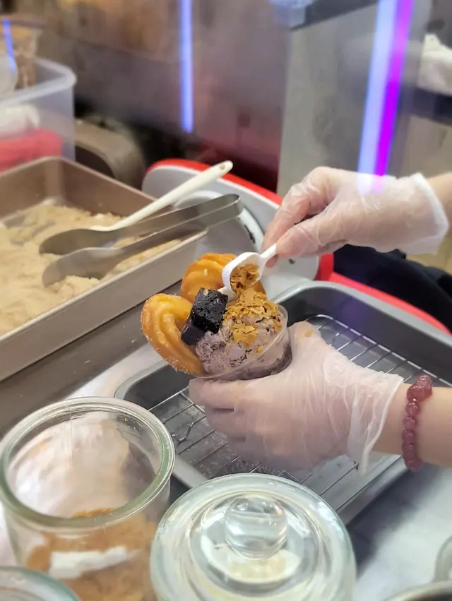 他們也太狂了吧~~一家小店 人龍排到轉彎!!即便有三人在店忙 還是追不上人龍🤣✨王卡衛朱古力廠 $65一份很簡單卻已經令小妹快樂都不行✋!!好美滿🥰他們的朱古力🍫Gelato 超級濃郁 厚身帶黏 入口慢慢熔化 再加上朱古力布朗尼更甜 朱古力🍫感加一加一 好!!重點是他們的churros 是即炸 即裹肉桂粉和糖粒裹得超滿 一手拿起🫴滿手都是粉呢🤤上面還加了香濃的朱古力🍫醬(更惑疑他們在底加了點朱古力🍫Gelato 更YUMYUMM 嘻嘻😁churros 先脆硬 內𥚃稍帶Q靭 每口都嚓嚓嚓 𥚃面又好咬再沾上🍫Gelato又冰又脆 加分加分🤎有些朋友只點他們的Gelato (特別是開心果口味 當天三點就已經賣光。。下次大家經過想要初嚐一下 可以😌先來個Gelato 嚐嚐🤭(再回頭is a must 卡卡~~…查看更多