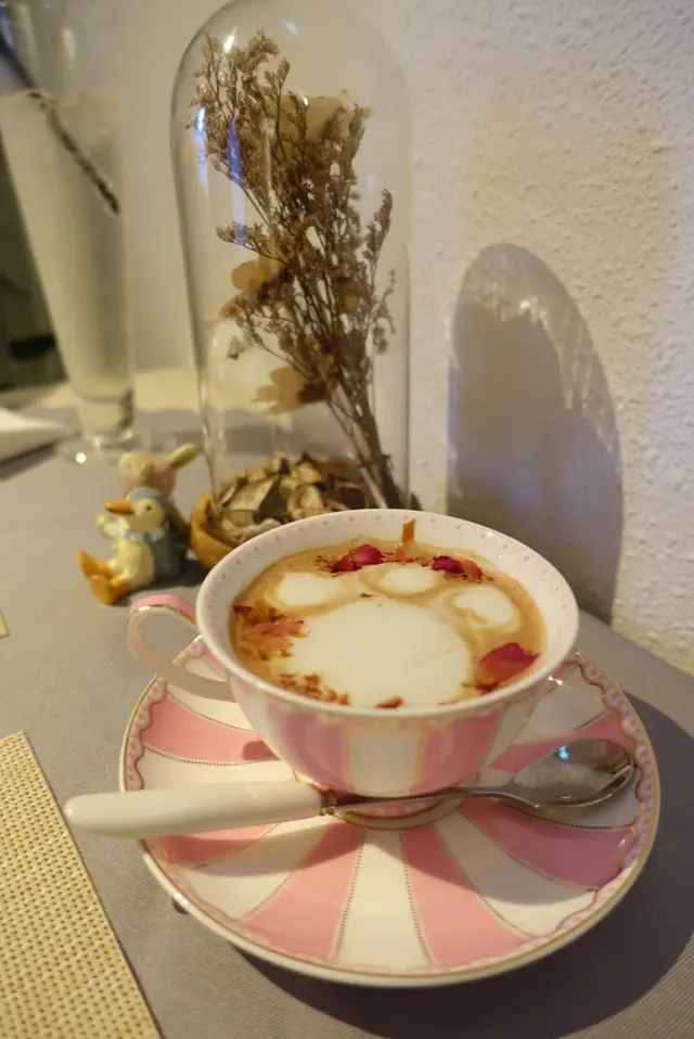 呢日約咗個港女朋友食飯,上網搵黎搵去都驚唔啱佢心水碌碌下見到呢間花花世界咖啡室,佈置好似好靚,啱曬俾佢影相打卡一入到去,真係好似走咗入花花世界咁佈置極花心思,環境氣氛營造得相當好食食下見悶可以起身周圍影下相而且每枱座位唔會話逼到痴埋一舊舊咁,啱曬三五知己傾心事南瓜忌廉湯(隨餐附送)好似要豎起隻尾指黎飲湯先對得住貢靚嘅碗同匙羹松露帶子雜菌意大利飯大大粒帶子同黑松露,呢個比其它CAFE要真材實料得多而且做到米粒外軟米心仍保持咬口,意大利飯黎講相當高質南瓜青口意大利米型粉 大鄉里唔知咩係米型粉,所以叫黎試下結果真係米型嘅粉,好特別好滑身,響個口度冼黎冼去都咬唔到佢咁要比較的話個人喜好呢個米型粉多過飯