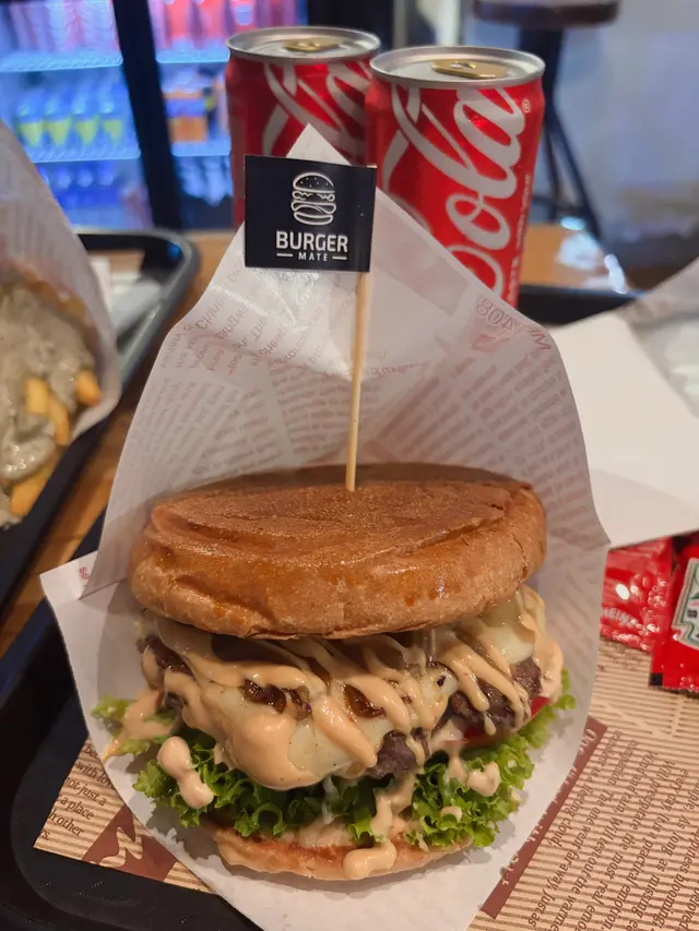 Burger Mate的漢堡包有著令人一試難忘的好味道,至今仍然念念不忘漢堡中香濃的芝士味,還有薯條上多到滿瀉的黑松露醬,特別喜歡到小店,份外有人情味。⧐ What we ordered ⧏瑞士芝士安格斯牛漢堡 HK$85蘑菇安格斯牛漢堡 HK$105黑松露薯條 HK$65汽水 HK$18當晚去到的時間尚早,店內未算多人,下單時能有機會店主攀談幾句,才得知原來除了漢堡肉外,連麵包也是自己搓!所以麵包的外皮有別於平日吃到的口感,外皮是酥脆的,有像豬仔包。亦正因為是自家出品的關係,所以供應量不多,每天大概賣300個左右就賣完,慶幸這天來得早,想吃的款式仍有供應,入座後不久門外已經有人在排隊等候。漢堡是很大的一個,芝士香濃面蘑菇也炒得很香,吃完是很滿足的。薯條是粗薯條,搭配多到滿瀉的黑松露醬,店家還貼心地提供了手套,不怕吃的時候會弄髒手。飲品方面點了汽水後才發現原來這裡有供應奶昔,下次要試!…查看更多
