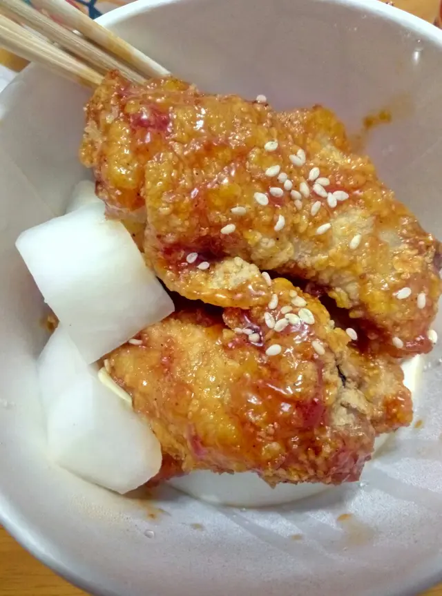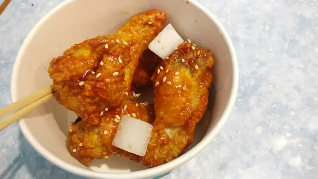 之前食過一次, 覺得唔錯, 於是又再幫襯.但原來加咗價, 一加都幾多...今次試咗[韓國冷面], 賣相吸引.佢先放碎冰係最底, 然後擺面, 最上面有紫菜+泡菜+蛋.E個面要擺一陣, 等冰溶咗先食, 如果唔係會成口冰, 口感奇怪.至於味道就一般, 湯和面都冇味, 唔會再食.另外要咗[泡菜腩肉飯], 套餐送飲品.味道唔錯, 唔會太辣, 有微微的甜味, 叫人食上癮.腩肉唔多, 非常薄, 肉質淋, 易咬.泡菜佔咗三分二, 酸辣適中, 令人開胃, 好餸飯!當然唔少得[甜辣雞槌], 之前食過, 今次加碼要8隻.keep到水準, 外面雞皮脆, 入面雞肉軟, 仲有肉汁.甜辣汁係加分之處, 會愈食愈辣, 好過癮!…查看更多
