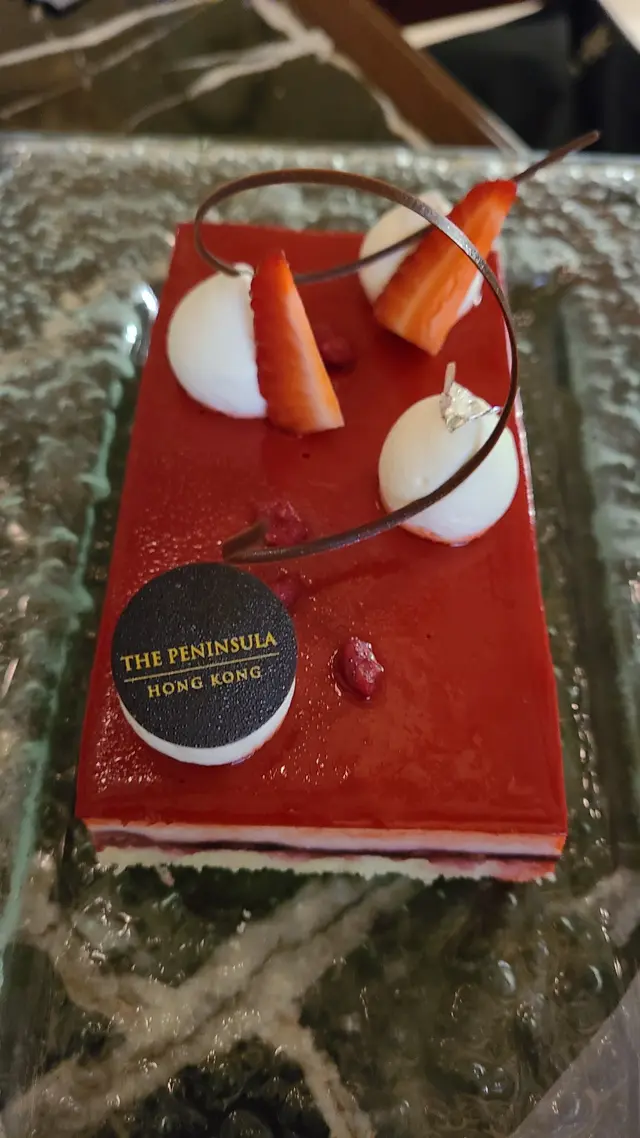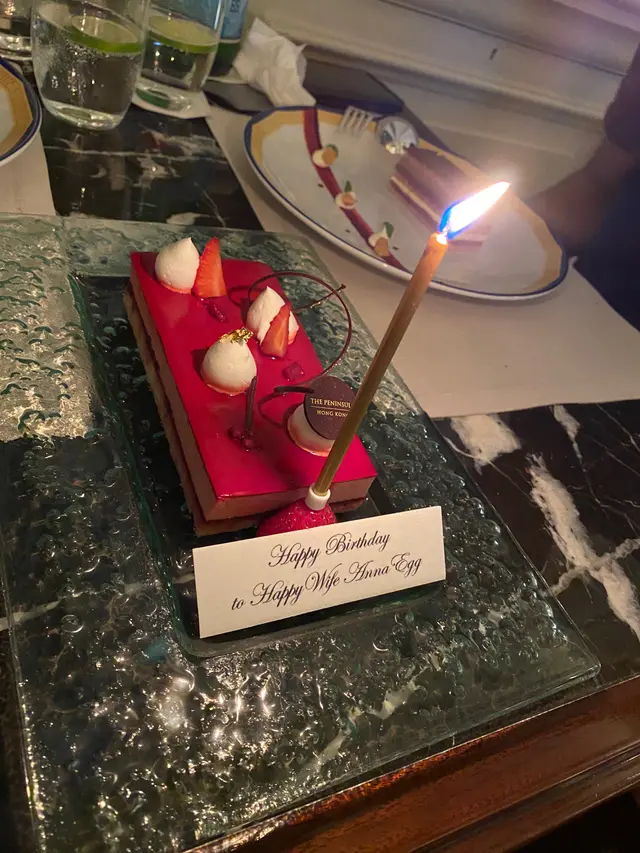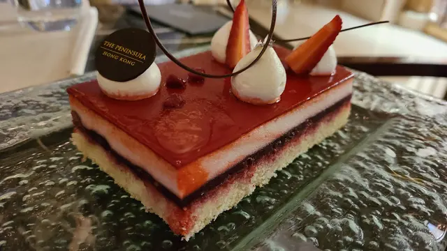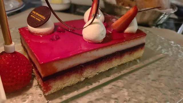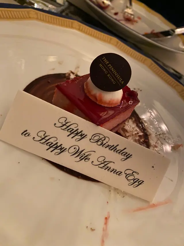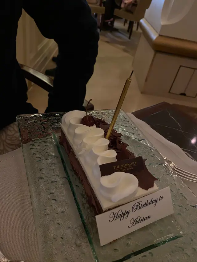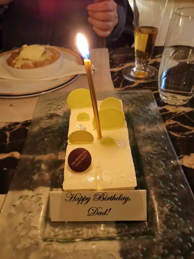 之前係半島酒店大堂茶座試過下午茶,今日第一次黎呢度食晚飯。大概兩個星期之前打電話訂位,只係星期四居然要waiting,而結果係wait唔到。於是再打電話問餐廳服務員先話原來遲15分鐘就有枱,點解唔早少少講?真搞笑既訂枱服務員......訂左晚上7點15分,最後6點45分已經有位,其實都無人。麵包籃有3款麵包,分別係圓硬包,芝麻果仁硬包同rye。麵包微暖,全部偏硬,質素真麻麻。Rye入面就軟d。芝麻果仁硬包既芝麻味就幾香。牛油無特別造型,不過好滑。快樂生辰獎賞餐牌有三道菜,包咖啡或茶。每位$528加一。第一道菜4揀1,湯要加錢。4道菜分別係:章魚沙律配烤時令蔬菜、橄欖、羅勒松子醬或羅馬蕃茄及甜椒湯配意式面包脆條或傳統法式肉批配醃磨菇、青菜沙律或龍蝦湯、香草忌廉 另加 $98章魚沙律配烤時令蔬菜、橄欖、羅勒松子醬章魚4片,加左醒胃沙律汁,好開胃又唔韌。下面墊有意式青瓜,意式黃瓜同茄子各兩片,好食。上面鋪上沙律菜同菊花瓣就有d苦。外圍羅勒松子醬好味。傳統法式肉批配醃磨菇、青菜沙律傳統法式肉批一大塊,都厚身,凍凍地,食落唔膩,不過唔係滑個d,肉味唔濃,作為前菜都唔錯,不過真心無特別。伴有少少沙律菜,醃紅蘿蔔同蓮藕片,個人覺得章魚沙律好食d。主菜6揀1,3道要加錢。6道菜分別係: 香煎盲曹配泰國蘆筍、香草布格麥、初榨橄欖油醬或烤豬柳及豬腩肉配椰菜花三款(燒、蓉、薄片)或燒波特磨菇、小扁豆、芹菜根蓉、松露醬或烤澳洲牛柳 另加 $128或烤白雪魚 另加 $128或加配扒大蝦兩隻 另加 $180香煎盲曹配泰國蘆筍、香草布格麥、初榨橄欖油醬香煎盲曹塊皮好脆,魚肉就較為粗,無法啦,盲曹係咁。下底有好多布格麥,食落煙煙韌韌,我第一次食。外圍伴有番茄粒,車厘茄,好酸。仲有5條泰國蘆筍。 烤豬柳及豬腩肉配椰菜花三款(燒、蓉、薄片)豬腩肉一大片,上面加左3點椰菜花醬同椰菜花片,烤得脆脆地,肥膏好多,真係食到一大條肥膏。豬柳就好瘦,味道質感正常無特別。烤椰菜花就無特別。呢道菜都有心思既。甜品2揀1。當然兩樣都試試啦。黑加侖子千層蛋糕配檸檬楓樹糖醬忌廉及杏仁脆脆黑加侖子千層蛋糕足有7層,朱古力慕絲有3層,海綿蛋糕有兩層,果醬就有一層,卡拉卡拉咁,上面加左一片金箔。食落朱古力味中帶黑加侖子既酸味,比我預期中好食呀,唔會太甜。伴碟有3點檸檬楓樹糖醬忌廉及杏仁脆脆,都唔錯。朱古力慕絲配奧利奧牛油脆脆及香草雪糕呢個甜品賣相好靚。脆脆朱古力半球體入面有朱古力慕絲,上面有少少金箔,慕絲唔算滑,不過好彩有脆脆外皮搭夠。碟中間擠有朱古力醬,上面加左一粒榛子。 另外伴有一球溶得好快既香草雪糕配奧利奧脆脆。呢碟朱古力甜品都唔過甜,唔錯。生日送一個半磅既蛋糕。賣相好出,係鮮紅色。蛋糕係海綿蛋糕中間有紅桑子果醬夾心,上面有薄薄一層紅桑子鏡面,再擠上忌廉,放上新鮮士多啤梨,朱古力條,食落酸酸地,仲有粒粒紅桑子咬下 ,都好味道。我地揀左以下咖啡或半島精選名茶。凍朱古力正常,加左少少朱古力碎。飲落有薄荷葉味。凍檸水大大杯,足有5片檸檬。生日優惠每4個送一個,埋單每人$436仲有蛋糕送,慶祝生日真係抵。環境當然無得彈。無敵既富麗堂皇歐洲裝修係我既至愛!加上有現場音樂演奏,多一重感官享受,雖然略嫌大聲左少少,我地左正live band下底。食物方面就普通左d,不過呢個價錢有呢個地方同環境都抵食既,甜品令我喜出望外。…查看更多
