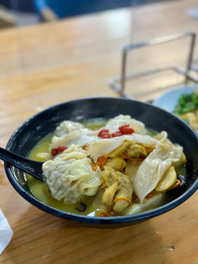 這間在觀塘工廈的雞湯米線近期大熱🔥店舖11點半開始營業,但每日未到12點就已經有長長人龍,足以證明其人氣之高👯————————————————————————雞湯金黃得來清澈不油膩🐔雖然膠質感不重但依然鮮甜濃郁,是真材實料熬製的味道🤩無骨雞件份量十足,肉質嫩滑絕非煲湯肉😎雖有醃過但雞鮮味仍出乎意料地濃厚,令人驚喜🥰三粒雲吞如三個網球般大🤯是我見過最巨型的雲吞❗️內餡塞滿豬肉🐷每粒均包着四隻蝦🦐鮮香爽彈,非常足料😋難怪網上有食評表示光吃雲吞就已經夠飽😂花膠同樣有三大片,質感彈牙😃雖略嫌有少許腥味🤏🏻但勝在誠意滿分🥳————————————————————————這間雞湯米線在食肆林立的駱駝漆大廈仍能突圍而出,本就已是信心保證👍🏻親身光顧後更覺驚艷🥹無論是否米線關注組人士都非常值得前來一試😎…查看更多