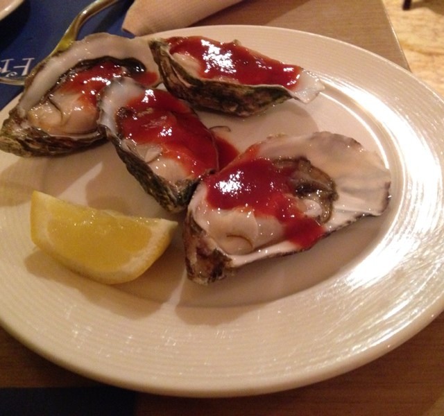生蠔,慢煮三文魚,朱古力慕絲蛋糕