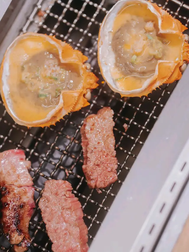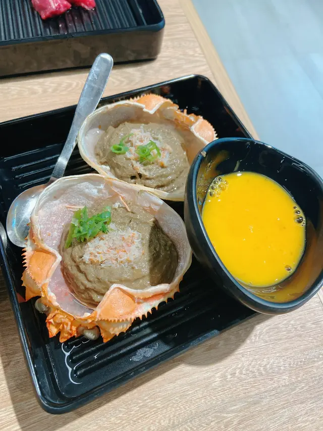 外面有些熟食和飲品可以自取,例如前菜、炸燒賣、餃子、日式小丸子、日式咖喱牛筋腩、麵食等。而飲品除了有一般的盒裝、支裝飲品之外,還有飲品機可以沖製咖啡、朱古力、牛奶等。我們入座後,職員先送上薩摩和牛拼盤壽喜燒,然後把牛肉和蔬菜籃的蔬菜先後放入鍋裏,再加上壽喜燒醬汁。職員幫我們涮好薩摩牛特上西冷後就放在我們的碟上,其他牛肉我們就自行燒烤。薩摩牛特上西冷十分大塊,而且牛肉肉味香濃好吃!把牛肉沾上雞蛋漿,除了香濃的蛋香味外,口感更加滑溜啊!蔬菜有冬菇、金菇、粟米、南瓜等,吸收了壽喜燒的醬汁後更加美味。而主角日本薩摩和牛,牛肉油脂非常豐富,可以看到牛肉的油花分明,燒過之後放進口裏,可以吃到牛的濃郁油脂香味。海鮮方面,有白鱔、虎蝦、磯煮鮑魚、蒜香牛油帆立貝、雞泡魚乾、香草芝士燒生蠔、油甘魚鮫等。我最喜歡雞泡魚乾和甲羅燒,雞泡魚乾經燒過之後味道香口,不過大家要注意時間呢,容易燒焦。而甲羅燒蟹膏味道濃郁,我吃了三個,配飯吃簡直一流,在吃放題之下,我竟為了甲羅燒吃了一碗飯,可見這個格羅燒味道真的不簡單啊!推介!🍜麵食我們點了冷柚子烏冬和咖喱牛肉撈烏冬,兩碗份量都不少,冷柚子烏冬味道清新,咖喱牛肉撈烏冬充滿咖喱香氣。🍨甜品、水果也是自取的,甜品有和菓子、蛋糕、啫喱等,而雪糕有日本雪糕雪條,我最喜歡雪米糍,有荔枝和梨味,味道特別,清新帶少許果甜味,不會太甜太膩,一口size,我都吃了好幾粒呢!