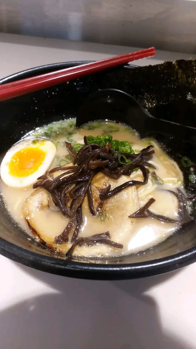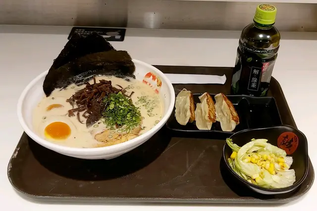 去黃埔Aeon行到肚仔餓就要搵野食,見到有間 誠拉麵,就食呢間啦,一人午餐🍜 叫咗碗白豚骨拉麵🍜,轉套餐加 +$15,就有日式沙律🥗 + 餃子(3隻)🥟 + 罐裝汽水(1罐) 可轉解茶/解綠茶一支🍵 白豚骨拉麵 配料有海苔3片 + 木耳絲 + 蔥 + 半熟玉子蛋1隻 + 叉燒3片 $85湯底濃郁,又滑又香,飲落唔會太咸,唔會太油膩,味道啱啱好;拉麵質地幼細,軟硬度適中;每一塊叉燒都燒過,肥瘦均勻,肉質嫩滑又香;半熟玉子蛋,一啖放哂入口,即溶化,好正好味道;木耳絲夠哂爽口 餃子🥟即叫即煎,煎得香脆,皮薄餡多日式沙律菜 + 粟米,新鮮好味🥗解綠茶一支🍵 誠拉麵 (紅磡)紅磡黃埔天地青樺苑(第5期)AEON百貨地庫B107號舖…查看更多