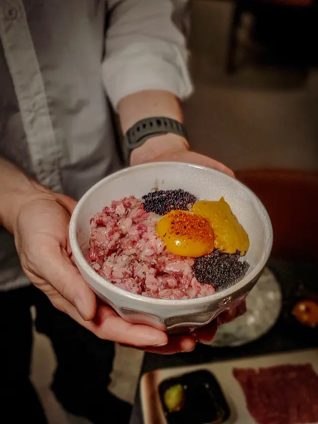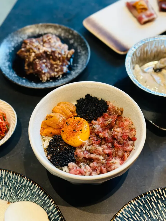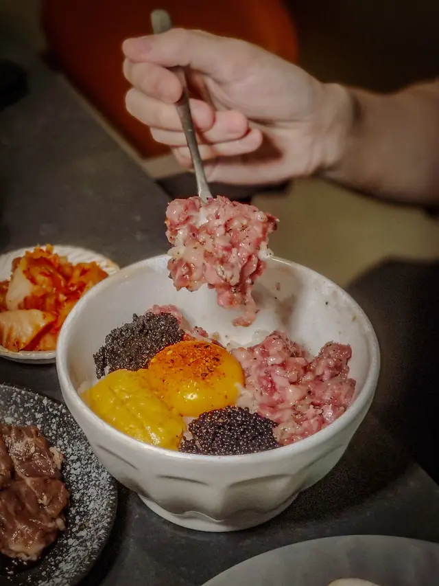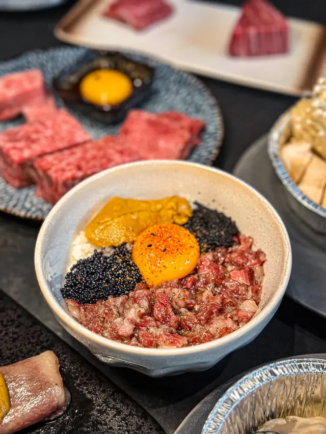 呢間餐廳被網路評選台北燒肉第1名🇹🇼香港為首間海外分店,秉承本店理念,主打人手現切日本A5和牛燒肉🐂🐮和牛衝擊8道菜套餐($820/ 位)💗極生牛肉佐帕瑪森起司底層係外脆內軟嘅蒜香厚多士,鋪上厚厚一層生牛肉他他,再刨上鹹香濃郁嘅巴馬臣芝士,最後以魚子醬點綴,味道好豐富🍞💗美國牛舌厚切厚切牛舌表面燒得焦香,入面保持脆嫩彈牙,最適合配搭自家鹽葱油或青檸汁👅💗日本A5和牛牛小排薄切和牛牛小排油花分佈平均,肉質軟嫩細膩,入口即溶,建議配搭鹽昆布或油封大蒜🧄💗日本A5和牛刺身選用和牛三角做成薄切刺身,帶豐富霜降油脂紋,配上獨家日式醬油同Wasabi,清新得嚟又有油脂香🥓💗日本A5和牛月見金磚將A5 和牛肉眼切成小磚頭,呈大理石油花紋理,一咬落去滿滿油脂同肉汁係口中噴發,蘸上生蛋黃同燒肉汁,口感更絲滑🥚由於油脂含量多,建議加埋白飯同意大利黑松露醬一齊食,中和油膩感外,更增添一份松露香🖤💗日本A5和牛海膽卷火炙和牛三角口感滑嫩,油脂豐潤,結合鮮甜嘅海膽,海陸滋味係口中互相交錯🧡💗日本A5和牛夏多布里昂和牛夏多布里昂屬於牛柳最嫩嘅位置,脂花紋路幼細,肉質最軟熟嫩滑,肉味濃郁且油香四溢,最適合配搭柚子燒肉醬,除咗提升肉嘅鮮味,柚子嘅清香可以中和油膩感🥩💗醬漬封門柳選用美國封門柳,用上自家醬油醃漬,肉質柔軟帶嚼勁,牛味濃郁之餘滲透醬油嘅香味🐃💗時令蔬菜籃日本山藥爽甜黏滑,意想不到同明太子美奶滋非常夾;翠用瓜爽脆清甜,配上特製辣椒粉增添風味;醬油牛油雜菌有齊雞髀菇、秀珍菇同金針菇,非常索汁🥙💗真理丼(+$150)真理丼集齊和牛他他嘅油香、海膽嘅鮮甜、魚子醬嘅鹹鮮、黑松露嘅香味、蛋黃嘅creamy,連同白飯撈埋一齊食,味道層次豐富🍚💗今歸仁西瓜意式手工雪糕 ($62)西瓜雪芭冰感清爽,啱晒食完燒肉後清下味蕾🍉💗菠蘿桶柑意式手工雪糕 ($62)菠蘿雪芭微酸清新,特別加咗柑橘肉係裡面,完全消除哂油膩感🍍💗紅提蜂蜜酒 (+$68)選用純正香港本地蜂蜜發酵,並加入紅提子乾釀製而成,入口帶葡萄香甜,散發出淡淡蜂蜜味,非常易入口🍇…查看更多