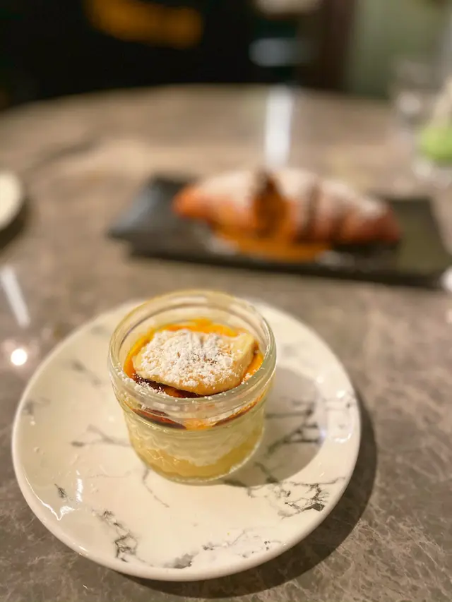 西環近年有咗地鐵後已經今非昔比,可幸既係帶嚟嘅社區重建造就咗好多新餐廳進駐,而家已經演變到一個小soho,各式各樣嘅餐廳都可以搵到。今次試嘅呢間fusion菜啱啱開幕冇耐,而家仲係Soft opening,見價錢都幾適中。——————流心牛角包都算係餐廳嘅招牌,喺其他地方都冇見過,嚟到一定要試!一切開裏面嘅龍蝦湯汁流晒出嚟,湯汁好濃好鮮味,好特別😝淨係睇賣相都已經好吸睛好有睇頭,生蠔隻隻都好飽滿,燒到啱啱好唔會太熟,所以保留到大量既鮮蠔汁,配上泰式辣汁入口特別惹味🤩一望落去已經見到大大隻大蝦,相當具份量,配上一絲絲嘅柚子肉以及泰式酸辣汁,特別開胃講到泰國特色又點可以唔提冬陰功呢,而夾埋龍蝦汁做湯底簡直係犯罪,整碟都係大蜆,帶子,以及大蝦,大量既海鮮將個鮮味推上另一個層次,送飯一流😋呢個帕能咖喱雞分量驚人,干炒嘅煮法處理咖喱雞相當罕見,每一啖都食到咖喱嘅香料包圍着整舊雞件🥰燉蛋相當精緻,一個小樽仔裝住唔同嘅層次,又最底嘅菠蘿汁,香滑口感嘅焦糖燉蛋,以及用菠蘿干做既裝飾,都顯得出廚師對甜品既想法又係用咗餐廳嘅招牌流心牛角包黎處理甜品,泰式奶茶制成既流心醬食落有滿滿嘅茶香,香甜嘅味道配上牛角包出奇地夾,為呢一餐畫上圓滿嘅句號😉…查看更多