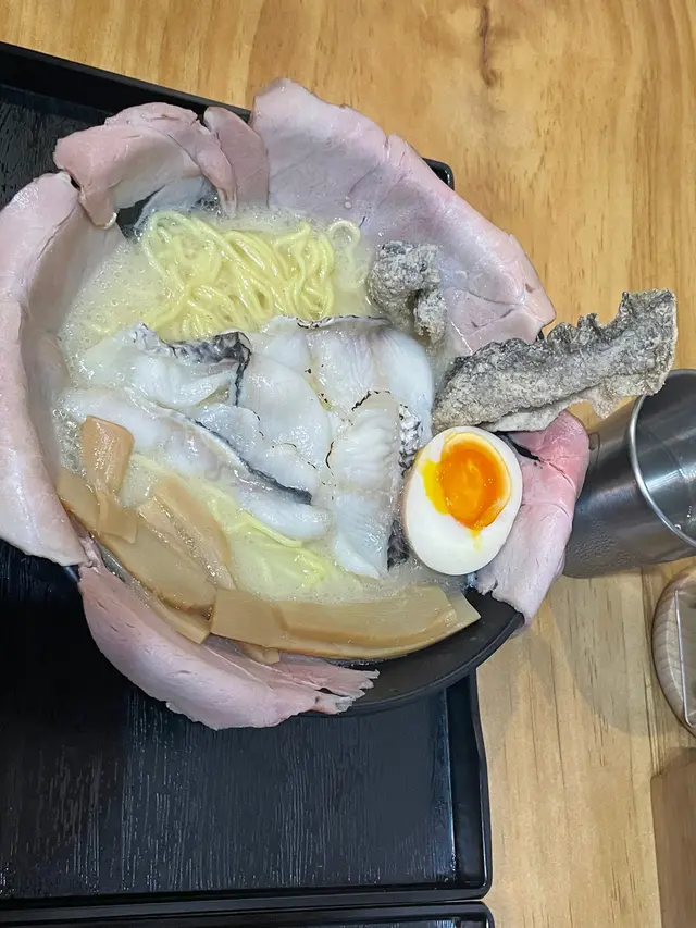 配有溏心蛋+慢煮叉燒+增量鯛魚片+炸魚皮
