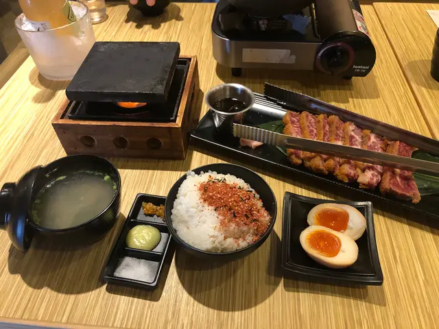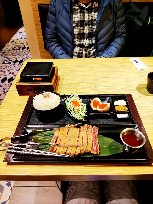 想食日本菜嘅時候發現呢間日本野🤣餐廳裝修得好和風 好有日本居酒屋feel🙈好舒服晚市套餐包湯/沙津同飲品😋鰻魚飯汁唔會太甜~而且鰻魚份量都幾多👍🏻甲羅燒新食法!之前都係夾飯或者就咁食 今次跟梳打餅食😳滿滿嘅蟹膏 蟹肉 飛魚籽 加埋鵪鶉蛋蛋黃🥹燒10分鐘左右就食得~一路燒蟹膏味一路漂埋黎🤤奢侈地放左一大羹落梳打餅度 估唔到成件事會咁夾 有剩仲可以拎黎撈飯食🤭重頭戲吉列牛😍牛有配汁同配料 可根據自己喜好點黎食仲可按自己中意嘅熟度放上石板度燒 員工好貼心一見個火熄左就即刻幫我加酒精粒點火👍🏻牛肉一啲都唔難咬!點啲鹽已經好好食😋吉列外皮仲脆卜卜蘋果金寶外層有餅碎 入面係蘋果粒粒 仲有提子乾 蘋果仲有少少爽口嘅口感 又酸又甜嘅感覺唔錯👍🏻伴碟用嘅水果都好甜好新鮮😋…查看更多