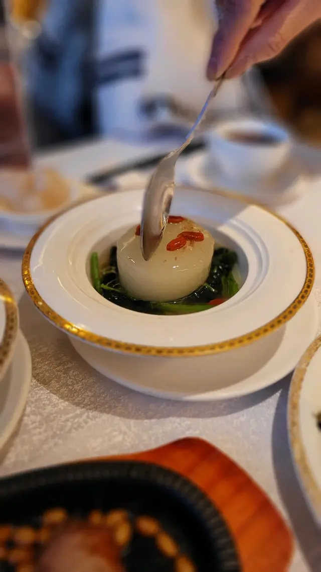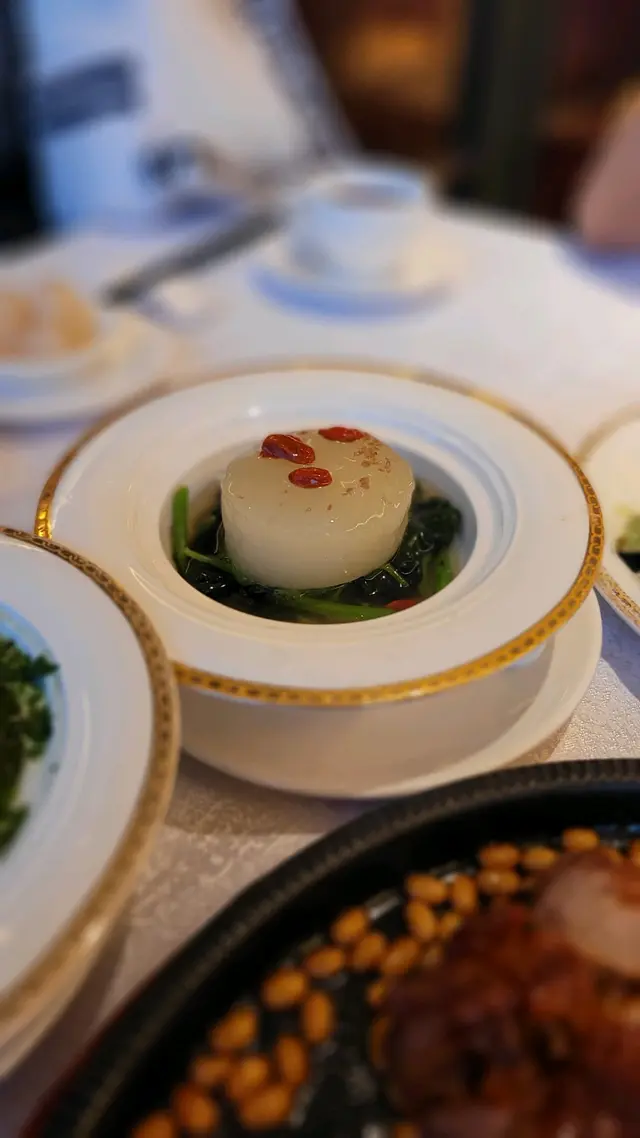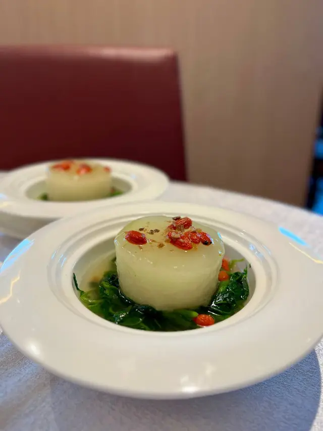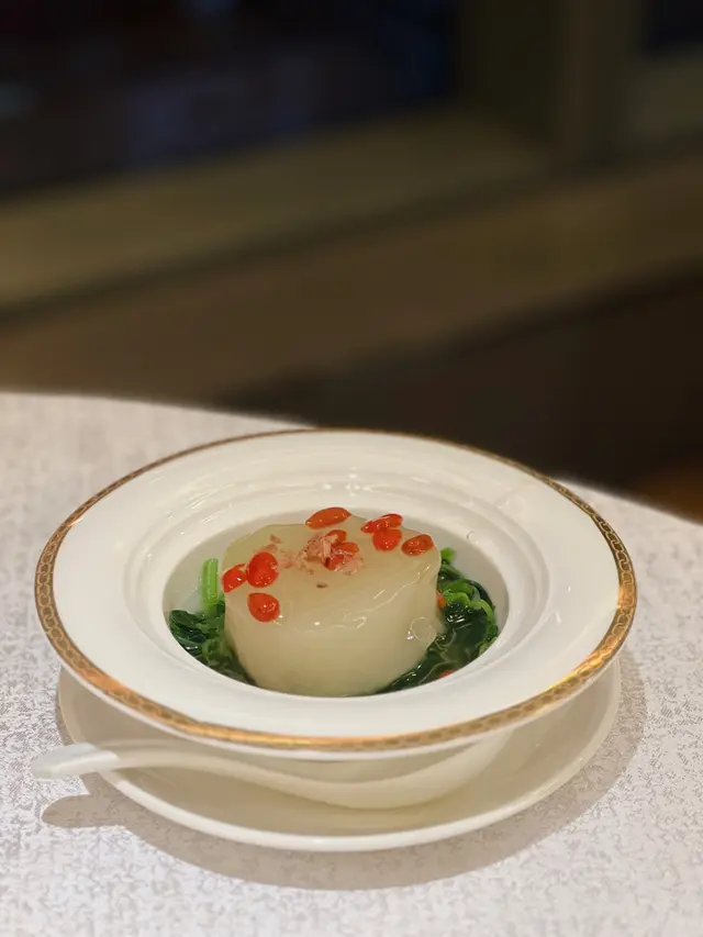 今日呢度呢間高級中菜館真係好有質素❤️ 望住維港夜景居高臨下嘅感覺真係好有格調🌃唔少經典嘅粵菜都做得好好同時加添了一點現代的創意🏮整體嚟講食物精緻環境高質好值得一試🤪⭐️ 潮式香炸蝦棗 🍘蝦棗香口得黎充滿彈牙嘅口感🦐食得出蝦肉嘅新鮮感配上醬汁更加解膩🌊⭐️ 羊肚菌姬松茸水中花燉湯 🍲用上羊肚菌同姬松茸豐富嘅香味好有層次感🍄🟫配上竹笙同冬菇等配料真材實料🤩燉出嚟嘅感覺係天然味道☘️ ⭐️ 碧綠雲腿白玉環 🌱冬瓜嘅清甜好新鮮🥒 輕輕用雲腿調味戴上鹹鮮嘅感覺🍖 清新而不會太重口味😊⭐️ 鹹魚手剁新鮮厚肉餅 🐷係回憶中嘅經典味道啊🥹 肉餅肥瘦嘅平衡啱啱好每一口都好Juicy🥓 鹹魚同薑蔥嘅比例剛剛好提升鮮度🐟看似簡單嘅家庭菜但係充滿心思😜⭐️ 桂花五色糕 🌼喺清甜嘅桂花糕上面仲配搭咗火龍果同埋芒果🥭果香甜度有層次好豐富🍉而且五色嘅造型好精緻🌈⭐️ 生磨蛋白杏仁茶 🤍入口非常柔滑充滿濃郁嘅杏仁香🌰係好清潤嘅懷舊甜品…查看更多