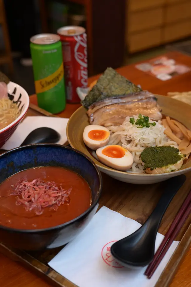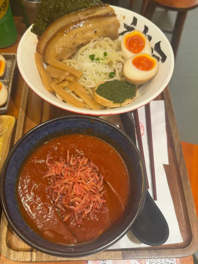 今日來了旺角這間充滿日系及動漫色彩既麵屋神匠用餐!餐廳滿滿都是日式色彩繽紛既圖案同設計!夏祭氣氛好濃厚!岩曬打卡影相,非常有特色!今日點了一份二人套餐!仲升級了蝦沙沾麵跟蟹白湯拉麵!這間餐廳的蝦湯、蟹湯相當出名!一定要試!二人套餐仲可優惠加配汽水!爽!日式南蠻炸雞!雞件啖啖肉,香脆惹味!配埋醬汁來食超惹味!充滿日本風味!仲有一隻溏心蛋!超滿足!整上蟹白湯拉麵,超豐富及足料既一碗拉麵!湯底鮮甜奶白色,勁鮮甜!不論品嘗湯底或配上拉麵來食,蟹味十足!仲有滿滿的蟹肉、蟹棒、蟹絲!勁足料,蟹味鮮甜無比,勁足料超正!叉燒大大片,相當好咬口同惹味!成碗拉麵超有水準!又足料!必試!神匠蕃茄蝦湯沾麵!一碗沾麵,這款麵條較為粗身,有咬口,口感煙韌,而且非常掛湯汁!一流!仲配有豬腩肉片,肥瘦分明,豬肉味香濃,入口超香超惹味!最欣賞是蕃茄蝦湯,滿滿的櫻花蝦,非常鮮甜!而且蕃茄湯超足料!蕃茄又香又甜!仲會食到滿滿的蕃茄肉!用來做沾麵的湯汁超惹味!兩款麵食都相當美味!各有千秋!正!…查看更多