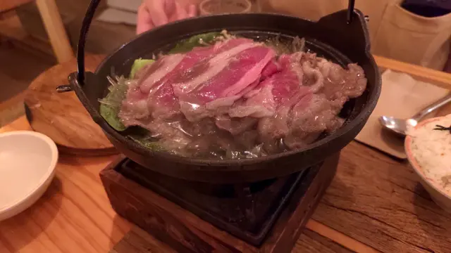 間舖既空間又大又舒服 店員服務又好 上菜速度又快頭盤既蟹子沙律有青瓜,蟹子同蟹柳,仲有大量既蔬菜 沙律既醬又唔會太膩 份量岩岩好 成個沙律又好味又fresh:)跟住既神戶牛肉鍋超好味 佢用黎燒既燃料又冇味 當鍋完全熟透既時候,燃料會用晒同無味 可以用鼻同口完完全全咁感受牛肉鍋既味味牛肉鍋既牛肉完全唔老 又唔肥 吸收左鍋既湯底 好好味 入面仲有菜,菇同粉絲 都好好味 個湯底飲落口又唔會話好油膩 甜甜地 又夠味最令我驚喜既係日式他他醬吉列魷魚,本身以為好炸 好乾 點知原來唔係 魷魚係炸粉入面仲keep左水份同口感 1d都唔乾 炸既外殻都唔係炸得好勁 食落唔刮口海鮮土壺茶漬飯都好好味 d茶撈入飯入面令碗飯更加易入口同好味另外我地叫左白桃烏龍茶同Matcha Latte 清清地幾好飲…查看更多