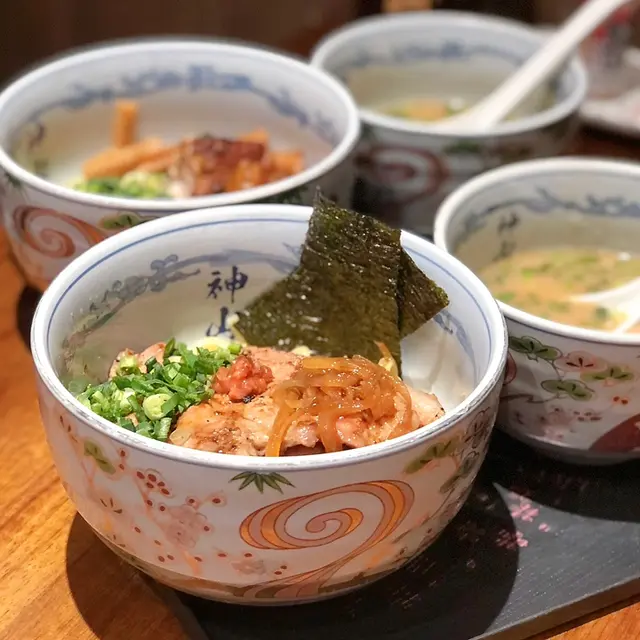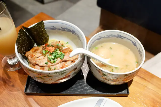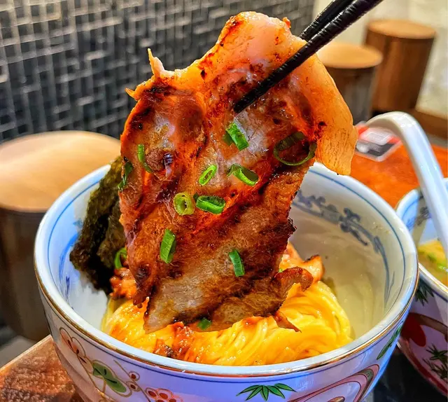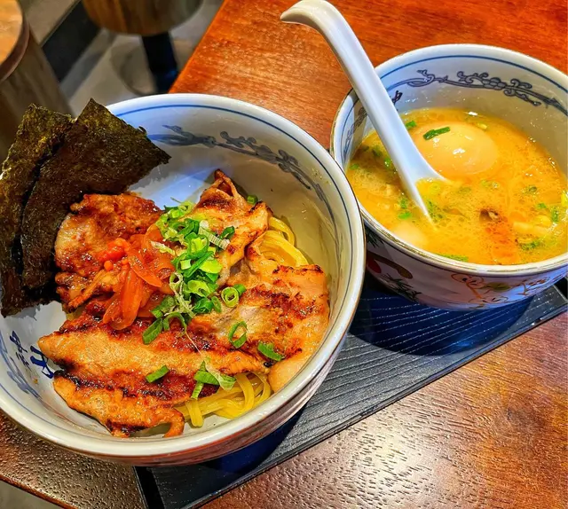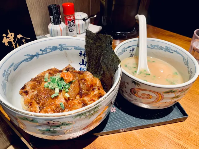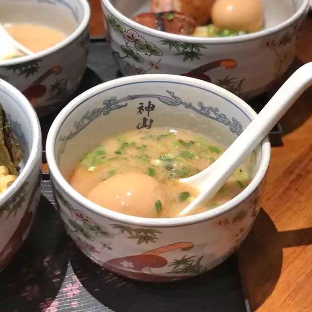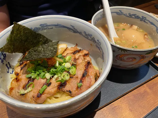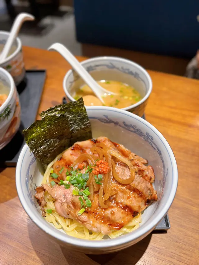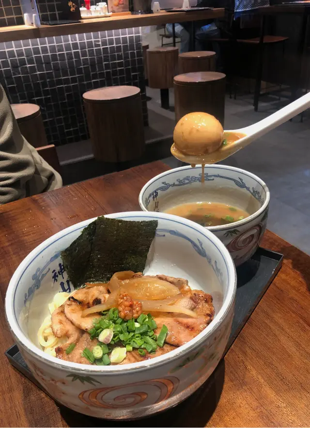 放工後專登和朋友來到尖沙咀這間神山麵屋吃沾麵🍜。🌟神豚燒叉燒沾汁麵 - 💸$88沾麵的湯頭味道濃郁,魚介味突出,不會太咸!麵條比一般吃到的沾麵粗並帶有坑紋,吃起來很有嚼勁😬,而且紋路使麵條更掛湯。配料方面,神豚燒叉燒可以見到網燒過的痕跡,雖然是薄切,但很大片,而且表皮燒得很焦香,好好食!個人覺得比厚切豚角好味,推薦🤘😋!🐷神山豚角沾汁麵 - 💸$88豚角非常肥美,油脂比例適中。炙燒過後的肥肉更香口🔥,雖然厚切但肉質很軟腍,配上沾麵汁同吃也不會感到肥膩。味付蛋醃製入味,有流心效果但個人略嫌太咸🥚。🔺九條葱豚肉串 - 💸$42十分推薦的小食👅!豚肉串相當大塊,燒肉亦能保持嫩滑多汁的口感,面頭灑滿黑椒、七味粉及洋蔥,十分惹味🤤。🦑蒜香魷魚鬚 - 💸$42另一道很出色的小食🤤!炒魷魚的鑊氣味很重,比蒜香味更為突出🧄。魷魚新鮮彈牙,配上沙律醬更有日式風味。飲品:🍎蘋果焙茶 - 💸$28適合不喜歡喝太甜果茶的人🍹…查看更多