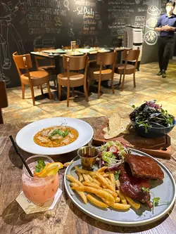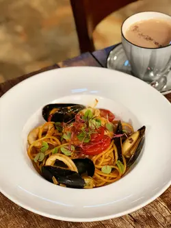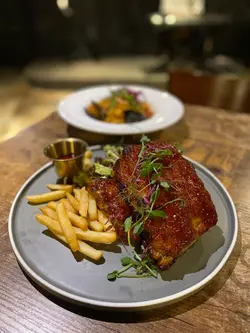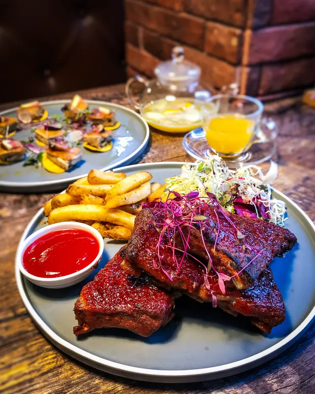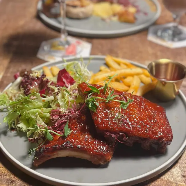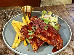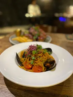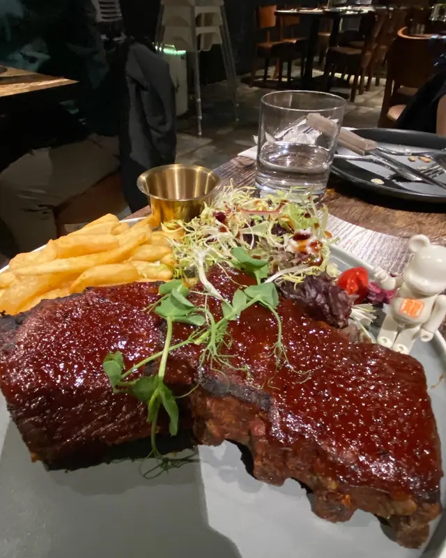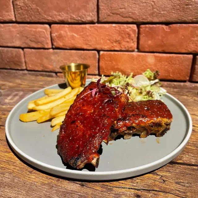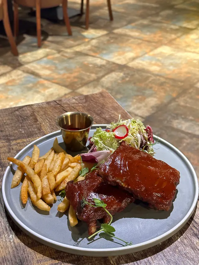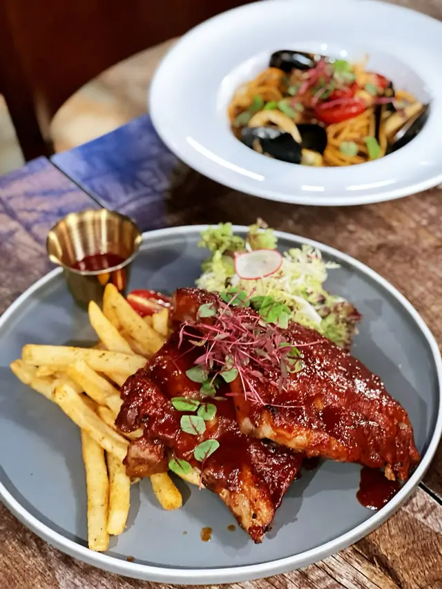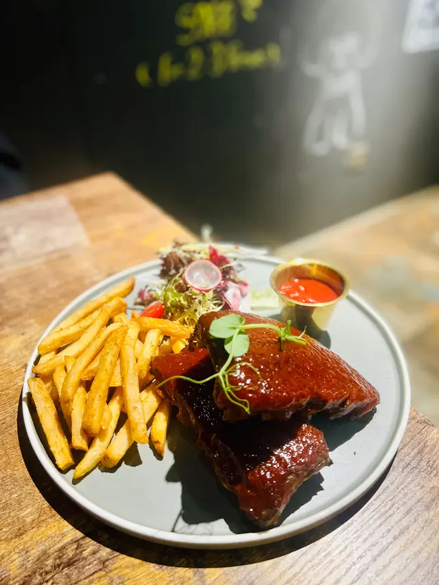 龍蝦汁🦞海鮮意大利麵(208hkd)意粉質地有咬口,意蝦汁嘅鮮味好突出,意粉🍝都幾濕潤,唔會炒到乾哂,有魷魚🦑、青口、蝦🦐,青口唔會腥,處理得幾好,回頭率極高🥰秘製醬燒豬肋骨(208hkd)上網睇評價已經知係一面正評,真係完全無令我失望,份量好足,cp值好高,醬汁酸酸甜甜好開胃😂有2大塊豬肋骨,每塊都切到成4-5條,一咬就脫骨,肉係好軟淋,夾埋啲肥膏真係好邪惡😍大推👍🏻焗蘋果酥雪糕🍦(128hkd)超級鬆化嘅酥皮,一定要夾埋雪糕一齊食,先係雲尼拿雪糕嘅甜味,再黎係蘋果嘅微酸,整件事好match,呢餐完滿了😋P.s. 呢度逢星期四、五有live music,都幾有feel,有興趣嘅要留意下喇👀#foodiblum西式 …查看更多