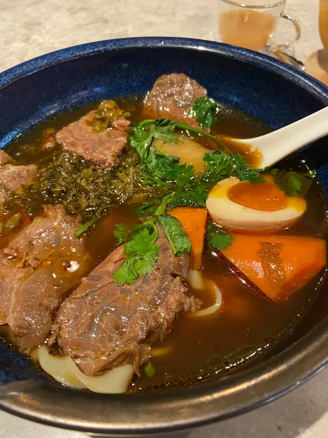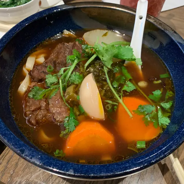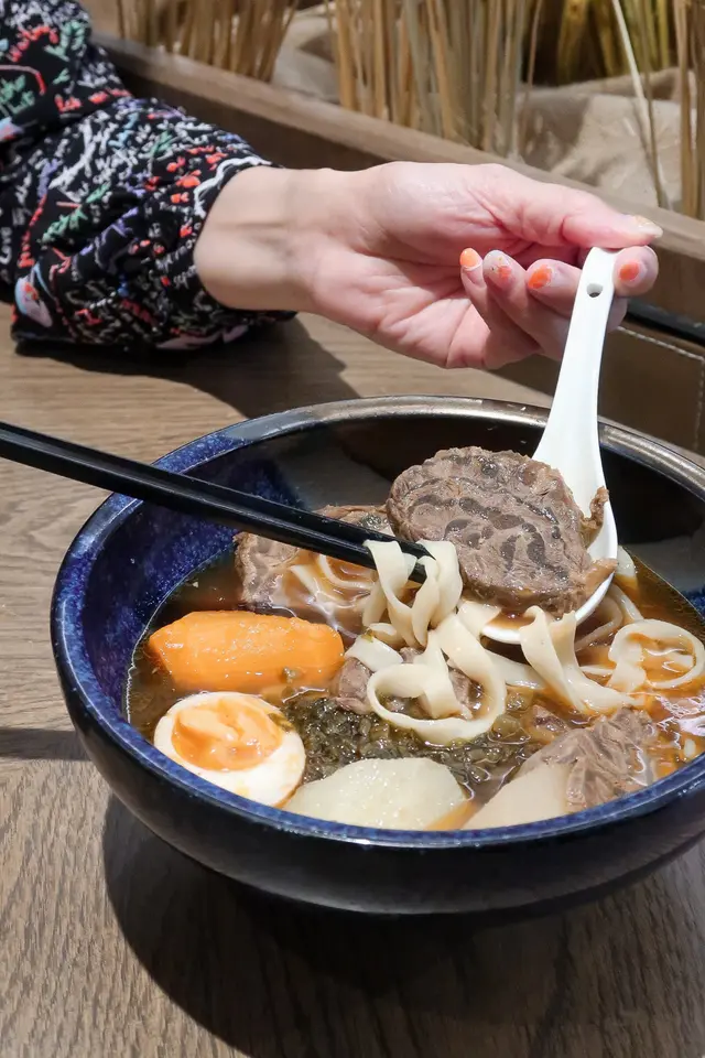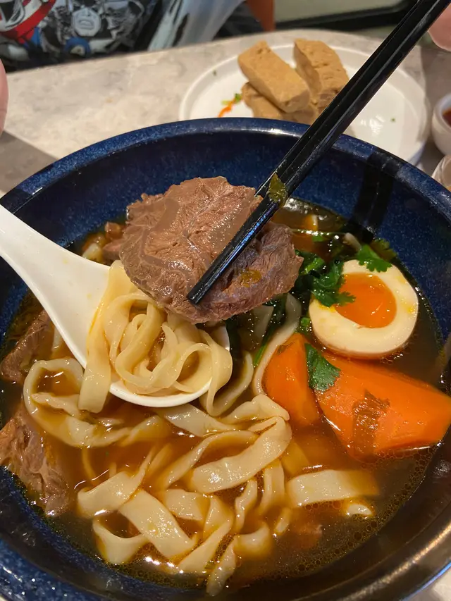 招牌菜:鵝不是鴨肉,鵝油伴麵套餐配有前菜酸薑、半隻蛋、飲品及餐湯。特別的菜式名字,其實是招牌菜滷水鵝,有鵝肉及鵝片。賣相唔錯,肉質鮮嫩,肥瘦適中。麵質煙韌,有口感,鵝油拌麵極香,將鵝嘅精華滲入伴麵。稻埕牛肉麵湯底嘅味道鮮甜濃郁,牛𦟌肉質軟腍,麵質亦非常煙韌彈牙,值得一試豆花芋圓仙草芋圓軟糯,豆花清甜,加上仙草同其他配料,層次多樣化。芒果西柚丸子香甜芒果,配上清爽西柚,丸子彈牙,底有碎豆花,感覺清新香甜。…查看更多