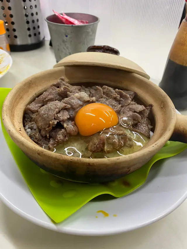 窩蛋鮮牛肉煲仔飯