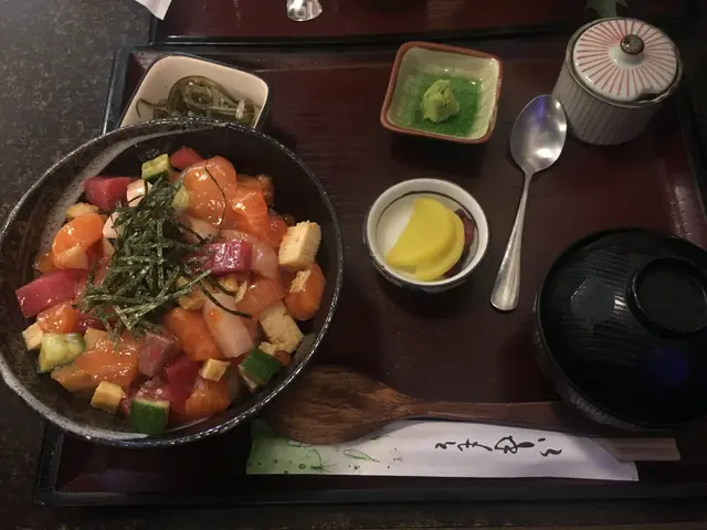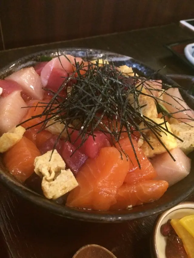 今日6:40到餐廳,已經有幾隊人等緊位。對比其他鋪頭,呢間特別受歡迎。由於要齊人入座,其人人又未齊人,等左大約5分鐘就入得。本身唔大好吞拿魚刺身,但見呢度吞拿魚比較出名,所以叫左個粒粒魚生飯,可以試到三款刺身。定食有:湯,茶碗蒸,醃豆同埋酸蘿蔔。加10蚊可以由麵豉湯轉為蜆湯。蜆湯味道偏鹹,蜆的份量十分多,分給另一碗湯亦足夠。食完前菜都填左少少個肚,食完先明白茶碗蒸既份量為何特別細。魚生鮮味十足,三文魚的油脂超好食,有入口即融既感覺。飯粒粒粒分明,明顯比其他日式用的飯粒不同。如果餐廳斟的是熱茶而不是熱水會更好。…查看更多
