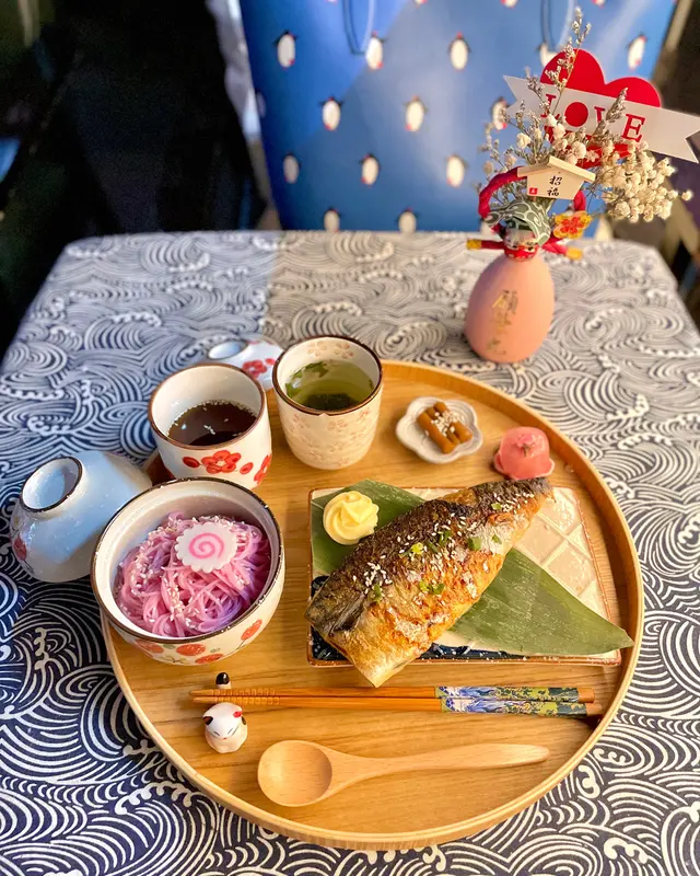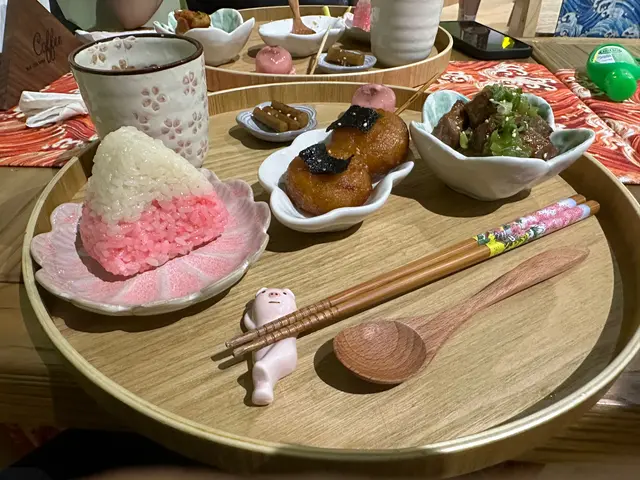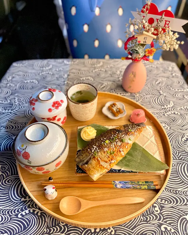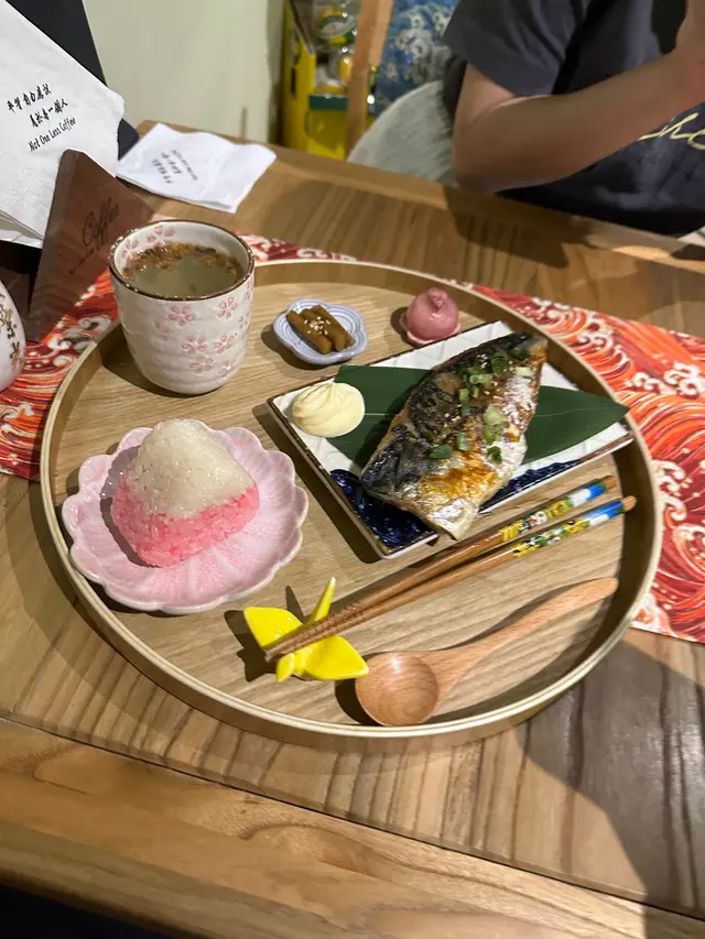 這家餐廳位置頗為隱蔽花了一段時間才能找到😅一進入ᴄᴀғᴇ見到有隻可愛狗店長🐶ᴡᴏᴀʜ ᴡᴏᴀʜ熱情地歡迎我們到訪🥰主打精品手沖咖啡☕還有日式家庭料理及精緻甜品餐廳也是寵物友善並供應狗狗的食物精緻日式家庭料理🍱 $140前菜🥙餐單上說好的醬油淮山漬呢😂?後來才知道漬物轉換了枝豆鹽燒鯖魚🐟鯖魚表面燒得皮脆肉嫩,鮮甜可口,一點也不腥,再蘸上蛋黃醬一起吃更美味😋富士山御結🍙是富士山造型🤩🤩,造型精緻粉紅色御結弄成富士山😍,裡面餡料是肉鬆沙律口味,口感甜甜的是日手沖茶🍵玄米茶櫻花福餅🍡吃到櫻花🌸的味道,像日式和菓子一樣,麻糬外皮口感QQ軟糯,裡面是白豆沙,味道偏甜小朋友最愛🍱 $120精靈球御結🍙明明年紀不小也不害羞點了個兒童套餐😂,超萌的狗狗碟放著2件可愛熊仔御結,粉紅色餡料是甜甜的肉鬆沙律,而粉藍色餡料是蟹肉蟹籽芝士蛋糕🍰香濃的芝士蛋糕入口軟滑乳酸飲品🍵有好多冰塊使味道變淡整體食物質素不錯👍,餐具及擺盤有心思♥️,很幸運遇到ᴡᴏᴀʜ ᴡᴏᴀʜ到ᴄᴀғᴇ做狗店長,不知道是否天天來,店員看見我們跟ᴡᴏᴀʜ ᴡᴏᴀʜ玩到很開心,也很放心讓我們帶牠出外散步,久違沒去遛狗,借此機會來回味一番😂…查看更多