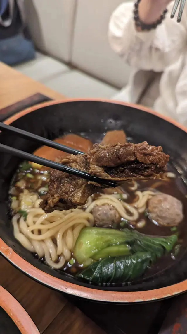 我哋呢啲新界牛就真係好少過海,星期日去開灣仔買嘢,見呢間餐廳嘅評分幾高,入去食個靚Lᴜɴᴄʜ先紅燒三寶牛肉麵 $102入面有牛腱、牛丸同牛肋條,每樣都有兩件,湯底有淡淡嘅藥材味,唔辣,麵底係招牌烏龍麵,食落幾軟糯,蘿蔔都炆到幾入味,每個餐都跟埋中華沙律、迷你甜番薯同蕨餅,都幾飽🫣黑糖豬軟骨飯 $82豬軟骨炆到入味,肉質鬆軟,唔柴,用黑糖煮嘅,甜甜地,仲有隻流心溫泉蛋撈飯🤩鹽酥雞 $48份量夠哂多,炸到熱辣辣上枱,食落好酥脆,調味啱啱好😚烤台灣香腸 $32份量都多,夾埋側邊嘅蒜片食,好有台灣嘅味道😋珍珠奶茶 +$14愛玉鳳梨綠茶 +$14上菜速度幾快,Lᴜɴᴄʜ Tɪᴍᴇ嚟食,都唔怕會遲🤣…查看更多