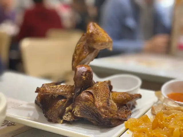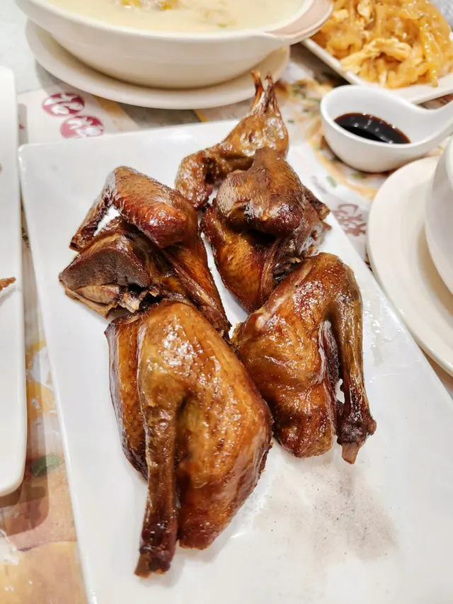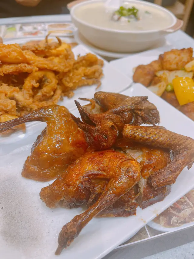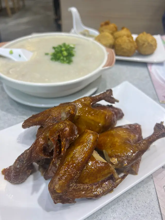 朋友話想食粥,就同佢地去呢間新記食雞粥,仲叫左幾樣小食,大滿足😋💕貴妃雞粥 $59一上枱就聞到好香嘅雞粥味,最加分點就係用瓦煲,保持到熱力之餘而且非常有風味,粥底好綿,帶有濃濃嘅雞肉清香,粥裡有好多件雞,雞肉都幾嫩滑,果然名不虛傳💕紅燒元朗脆皮乳鴿 $76即叫即炸熱辣辣,外皮炸到好脆,食落脆卜卜,配上准鹽真係幾好味,乳鴿食落都幾多肉💕海蜇手撕雞 $58大大碟份量非常足料,海蜇脆脆的好爽口,手撕雞肉質嫩滑,食落好香麻油味,十分開胃💕酥炸魷魚鬚 $61必食嘅小食之一,外皮炸到金黃酥脆,咬落去唔會成口粉,魷魚鬚入口彈牙可口,仲帶有鮮味,真係好食到停唔到💕菜芯炒牛肉 $86 (套餐包飯、例湯)炒嘅火喉都控制得恰到好處,「鑊氣」十足,菜芯保持翠綠新鮮及爽口,牛肉十分嫩滑,有濃郁牛肉香味,非常惹味…查看更多