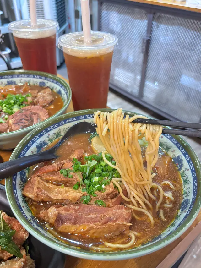 之前嚟附近shooting 已經食過一次,今次帶阿仔去完playgroup再食過😁呢度位置於觀塘興業街,地鐵站行過嚟幾分鐘就到,係一間的台式餐廳。今次點咗紅燒半筋半肉麵,湯頭濃郁,肉質軟嫩,微辣開胃食到停不了。牛肉葱油拌刀削麵好麵彈牙,搭配香氣四溢葱油香,阿仔聞到都流口水。小食當然要點酥炸魷魚鬚啦~外酥內嫩,加埋鹽酥粉最正。蚵仔煎餡料豐富,未去台灣可以食住蚵仔煎回味先!今次配選配仙草奶茶,清新解膩仲有柑桔檸檬綠茶,酸酸甜甜性價比高、位置方便、選擇又多,返工放假都食到👍🏻…查看更多