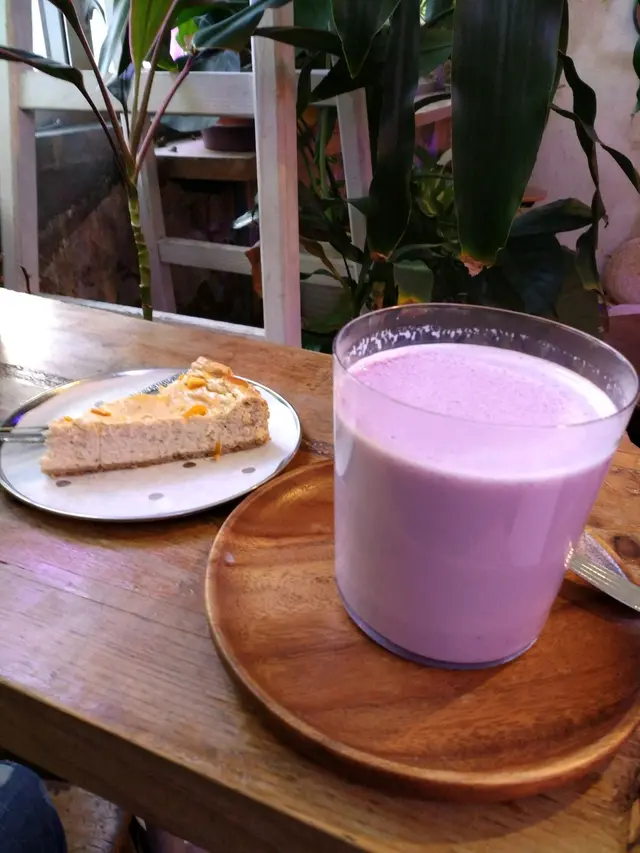 想黎呢間cafe好耐但又驚星期六日好多人會冇左去cafe既休閒感覺難得約到朋友平日下午黎~太好了~果然冇令我失望~間野真係裝修好靚呀好似城市中的綠洲一樣令人好relax 好放鬆呢!好多綠色植物~我地又好幸運可以坐窗邊位太陽曬落黎勁舒服我地叫左2杯野飲2件CAKE紫薯奶都係凍飲黎的紫薯味和奶味都好濃呢杯野超靚~係碟豆花茶其實係講唔出係咩味係甜甜地、冇咩特別既味道不過影相真係好靚(其實覺得個餐具超靚)cheese cake質感濕濕地黏黏地有cream cheese的酸味食食下又幾好味但我依然係食唔出碟豆花係咩味紫薯抹茶cheese cake這個質感是乾身的~跟碟豆花cheese cake的質感完全不一樣上面舖滿一層紫薯肉~超多紫薯呀 >< 味道算是較淡淡的~抹茶味也不會很濃~覺得蠻清新的~不會很膩~個人覺得甜點比飲品更出色呢!如果平日來~這真的一家很好hea的cafe呢!很喜歡店內的環境~~~…查看更多