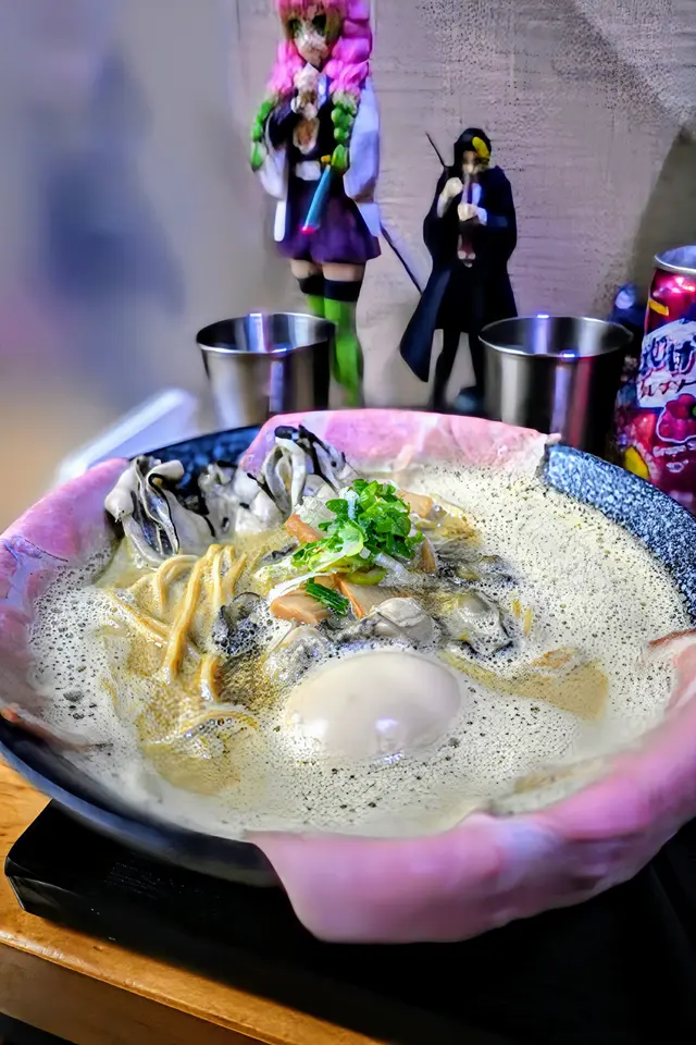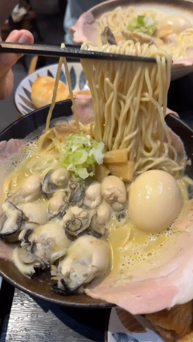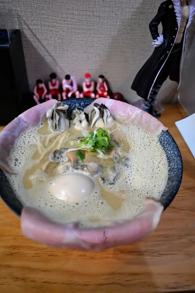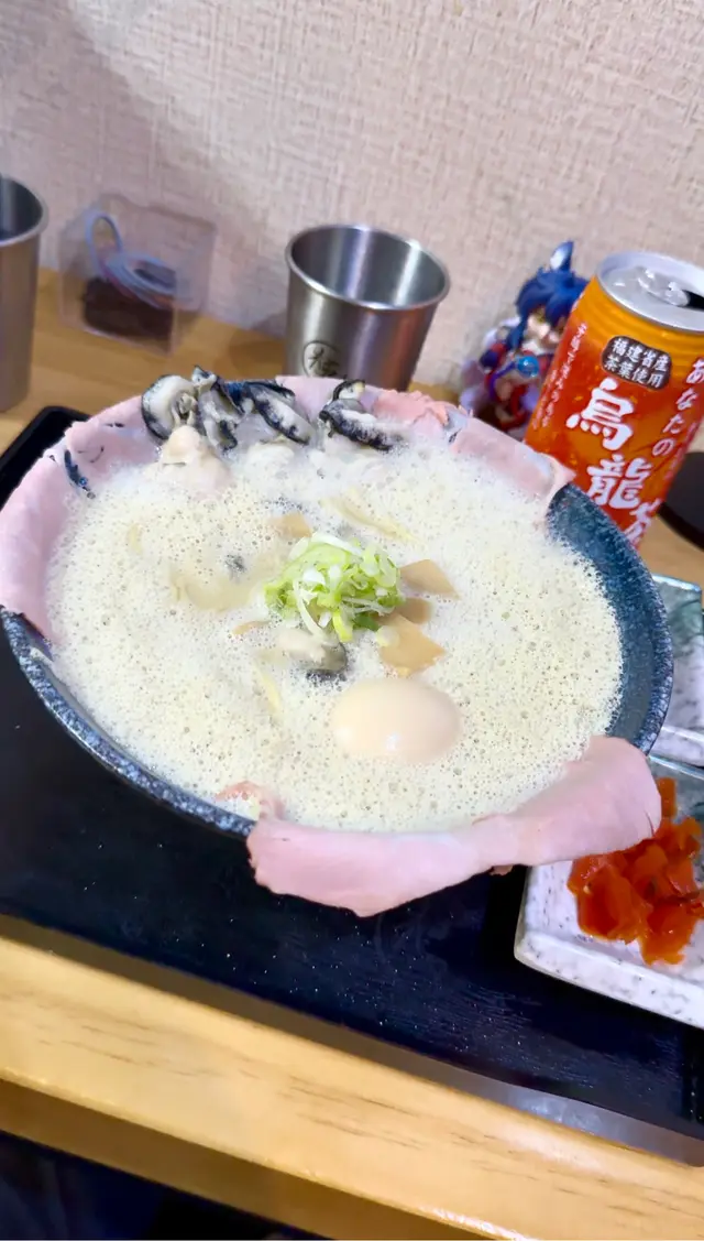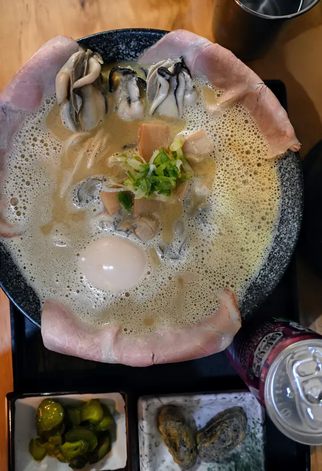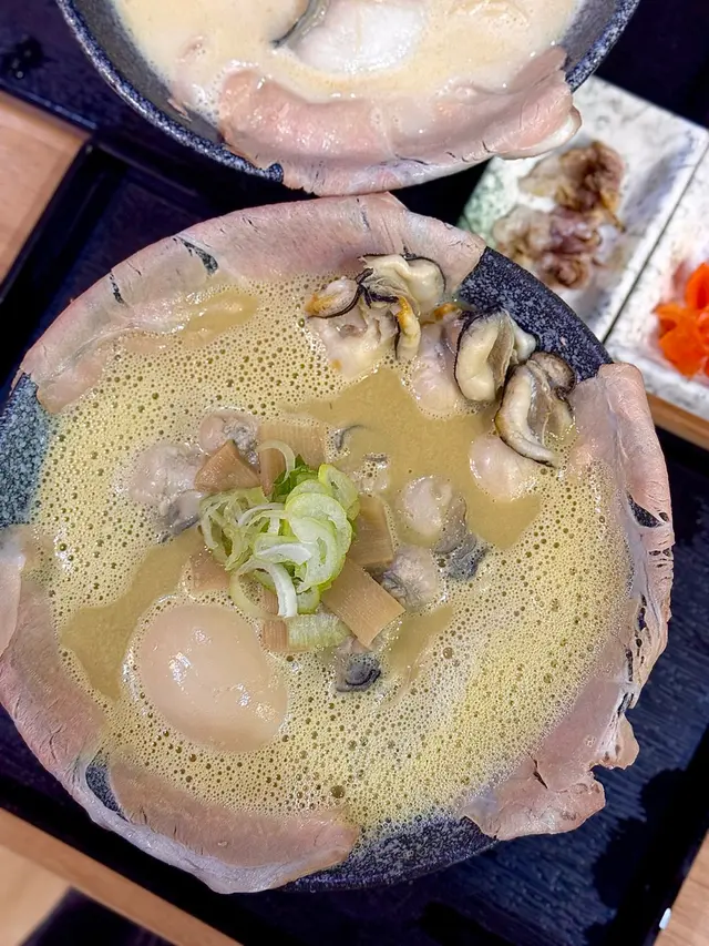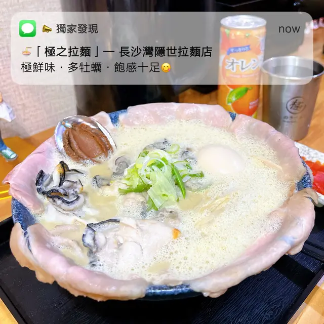 在長沙灣有間拉麵小店,主打牡蠣同鯛魚濃湯拉麵擺放動漫模型和海報作裝飾,播放日本流行歌曲店內座位不多,會因湯底不符合要求需要重煮而不開門充滿匠人精神,用心製作每一碗拉麵✾ 終極之廣島牡蠣濃湯拉麵 $138這款是店內人氣No.1,當然要點吃吃吃!湯底以大量廣島牡蠣熬煮,濃郁鮮甜不會帶腥味每一口都充斥著濃厚蠔香,盡是蠔的精華三粒飽滿肥美廣島牡蠣和多粒漬牡蠣碗邊三大塊粉嫩叉燒,肉質柔軟溏心蛋充滿蛋香,蛋黃半凝固帶流心效果把溏心蛋浸一浸牡蠣濃湯中更有風味✾ 極之黑松露鯛白湯拉麵 $98鯛魚湯底有辣度選擇,點了微辣鯛魚湯清甜鯛魚湯底中帶點微辣,突顯魚湯鮮味再加入黑松露散發淡淡松露幽香,層次飽滿鯛魚片鮮嫩細膩,拉麵軟滑且掛湯✾ 唐揚炸雞 $29炸雞不會炸至太乾身,肉質保留點汁水 …查看更多